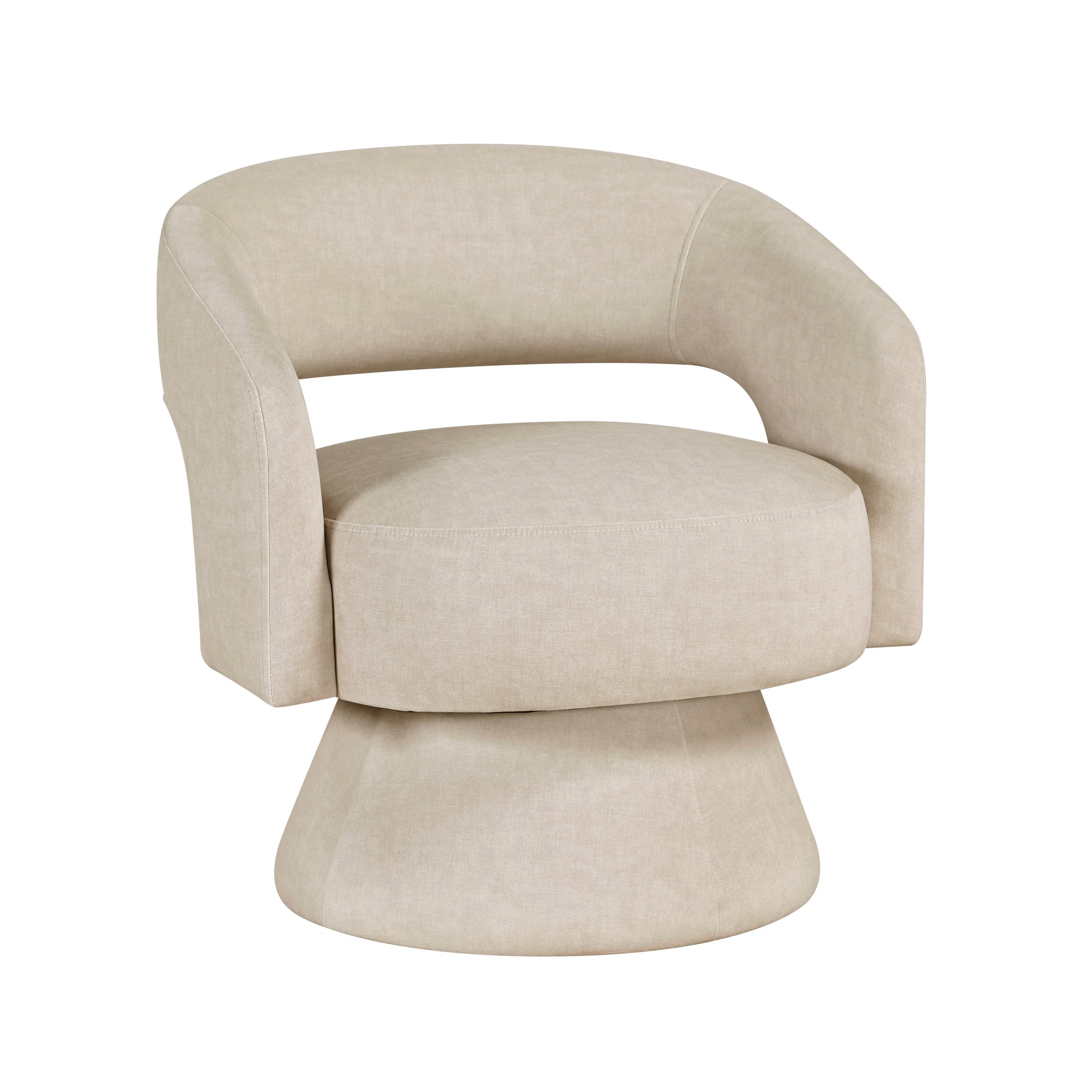 Add a touch of modern elegance and versatile functionality to your living space with this contemporary swivel barrel chair. Featuring a sleek, rounded silhouette and luxurious plush velvet upholstery in a sophisticated taupe, this chair effortlessly blends style and comfort. The smooth 360-degree swivel base allows for easy movement and conversation, making it a perfect addition to living rooms, bedrooms, offices, or reading nooks. The generously cushioned seat and back provide exceptional comfort, inviting you to relax and unwind. This chair is designed to be a statement piece, offering both aesthetic appeal and practical functionality to any modern home.