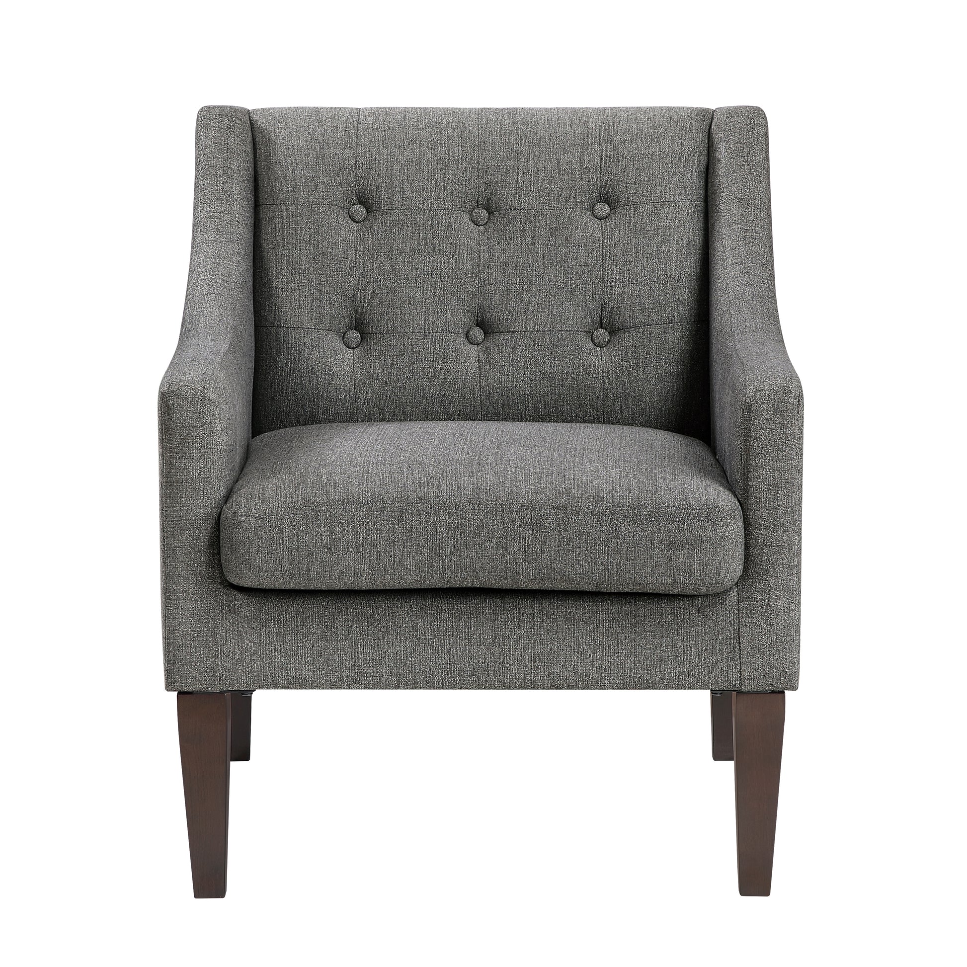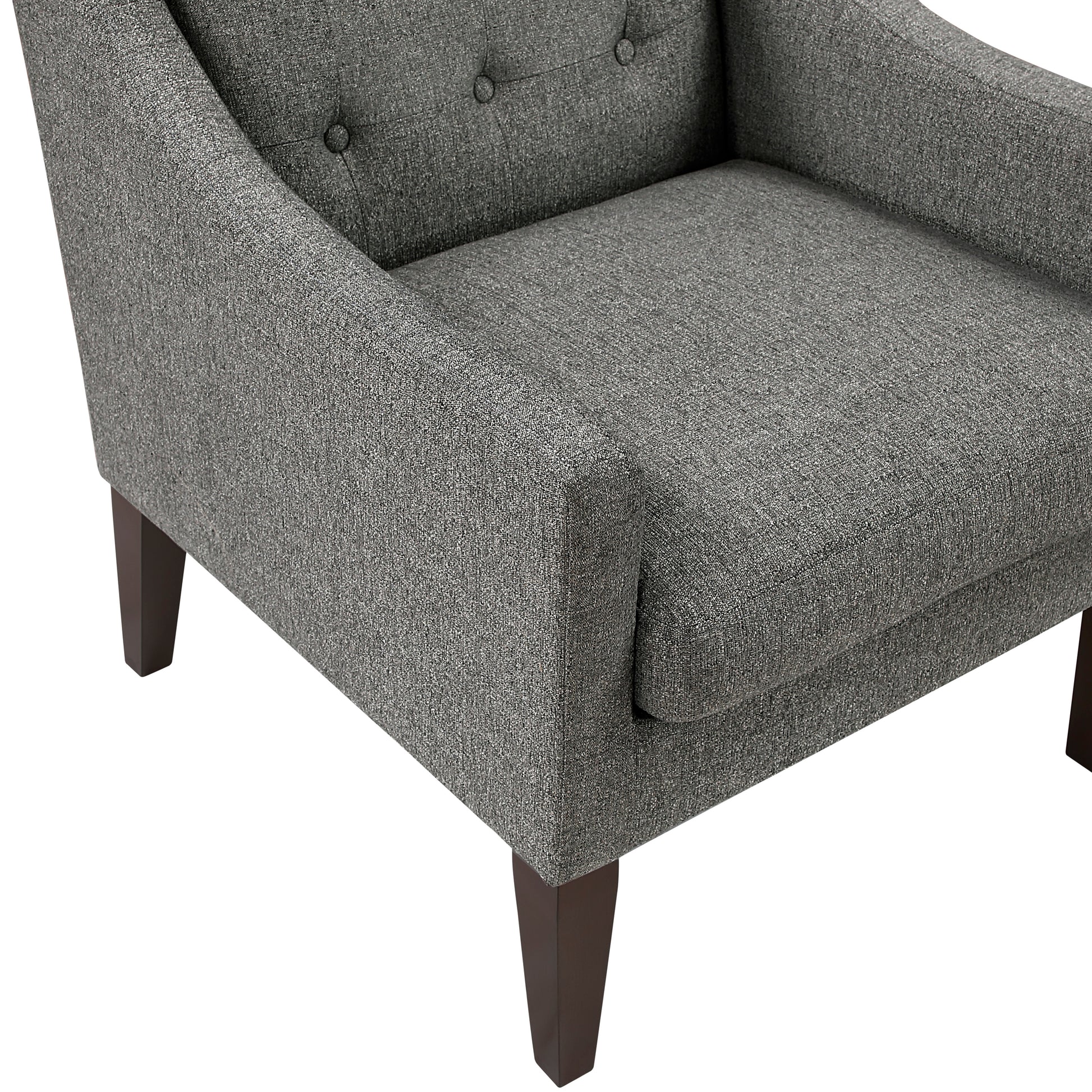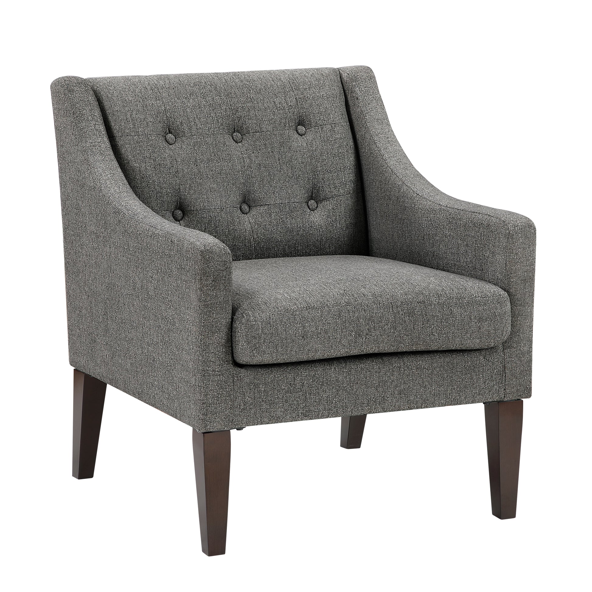 Elevate your space with this sophisticated mid-century modern accent chair, designed to blend timeless elegance with contemporary comfort. Upholstered in high-quality fabric with a plush tufted backrest, this chair offers both style and support. Its sleek, sloped arms and solid wood legs provide a sturdy yet refined look, making it a perfect addition to any living room, bedroom, reading nook, or office. The plush cushioned seat ensures superior comfort, inviting you to relax in style. Whether you're looking to create a cozy corner or add a statement piece, this chair delivers on both aesthetic appeal and long-lasting durability.