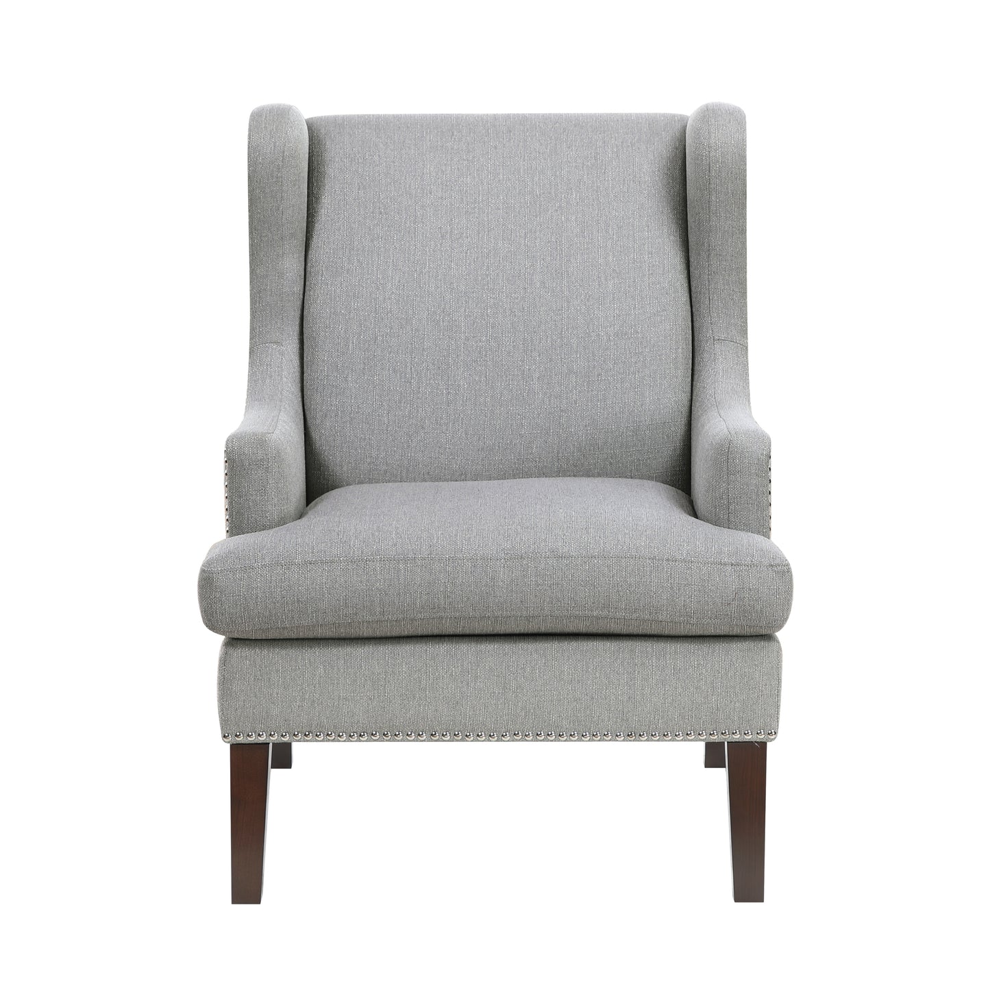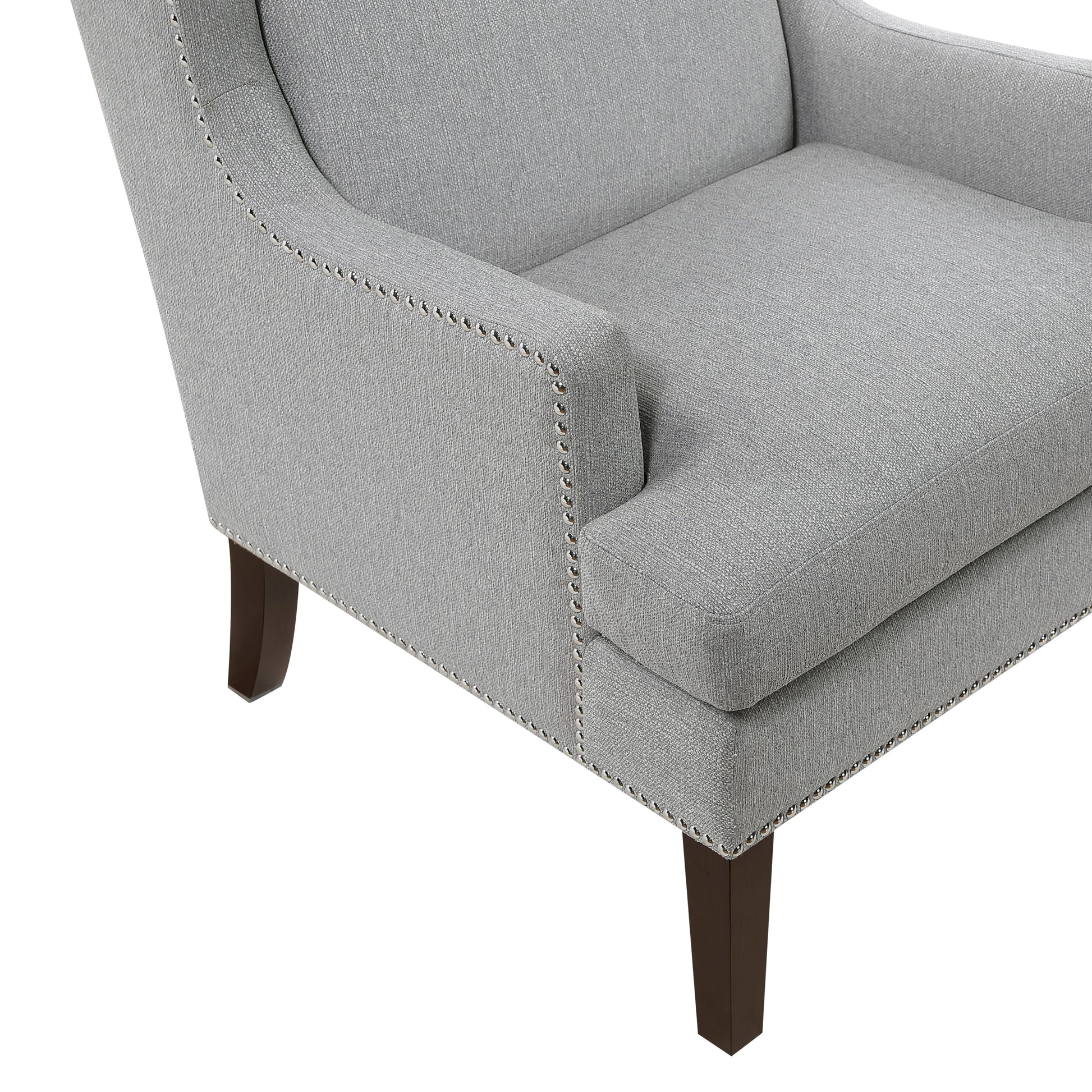 Enhance your space with this elegant wingback accent chair, designed to combine timeless sophistication with modern comfort. Featuring a high backrest with gently curved wings, this chair provides excellent support while making a refined statement in any room. Upholstered in soft yet durable fabric, it boasts nailhead trim detailing along the edges for a touch of classic charm. The plush cushioned seat and sturdy wooden legs ensure both comfort and durability, making it an ideal seating option for your living room, bedroom, office, or reading nook. Whether you're looking for a cozy retreat or an eye-catching accent piece, this chair blends seamlessly into traditional, transitional, and contemporary interiors.
