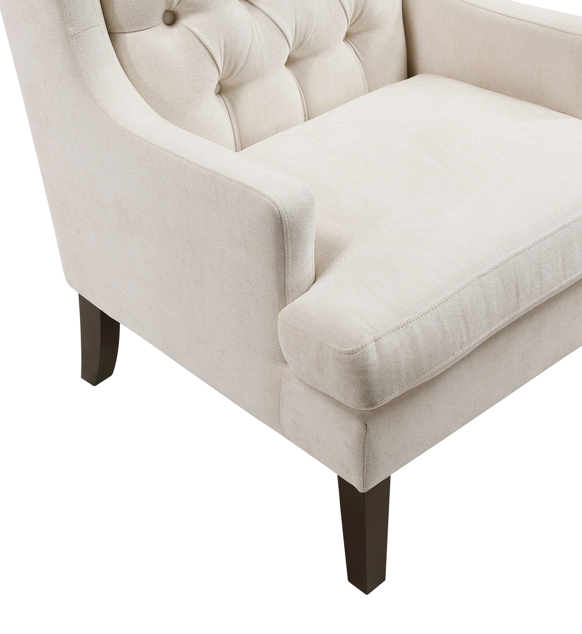 Bring a touch of sophisticated elegance to your home with this tufted wingback accent chair, designed for both comfort and timeless style. The high-back silhouette with deep button tufting creates a luxurious look, while the plush cushioned seat provides excellent support for relaxation. Crafted with soft yet durable fabric upholstery, this chair is complemented by sturdy wooden legs, ensuring long-lasting durability and stability. Whether placed in a living room, bedroom, reading nook, or office, this chair makes a stylish statement while offering a cozy retreat for lounging or entertaining.