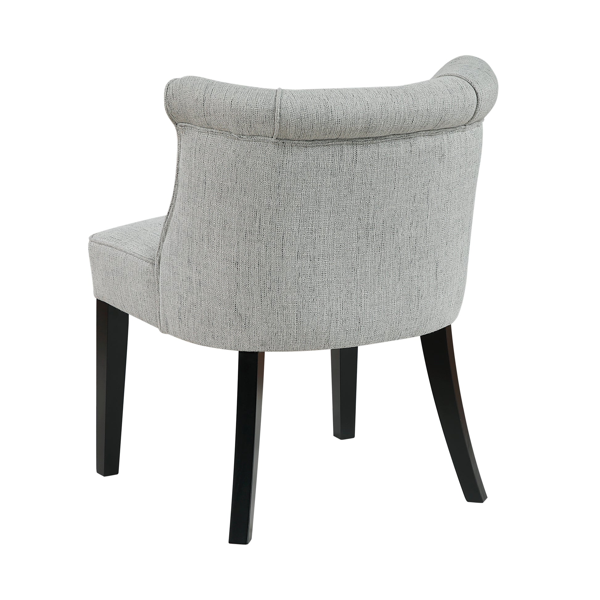 Elevate your home décor with this sophisticated upholstered accent chair, designed to provide both comfort and style. Featuring a gracefully curved back with subtle piping detail, this chair adds a touch of classic elegance to any room. The neutral-toned, textured fabric upholstery complements a variety of interior styles, while the generously padded seat ensures comfortable seating. Sturdy dark wood legs provide a stable and stylish foundation, making this accent chair a perfect addition to your living room, bedroom, dining area, or entryway. Enhance your space with this versatile and chic accent piece that seamlessly blends functionality with refined design.