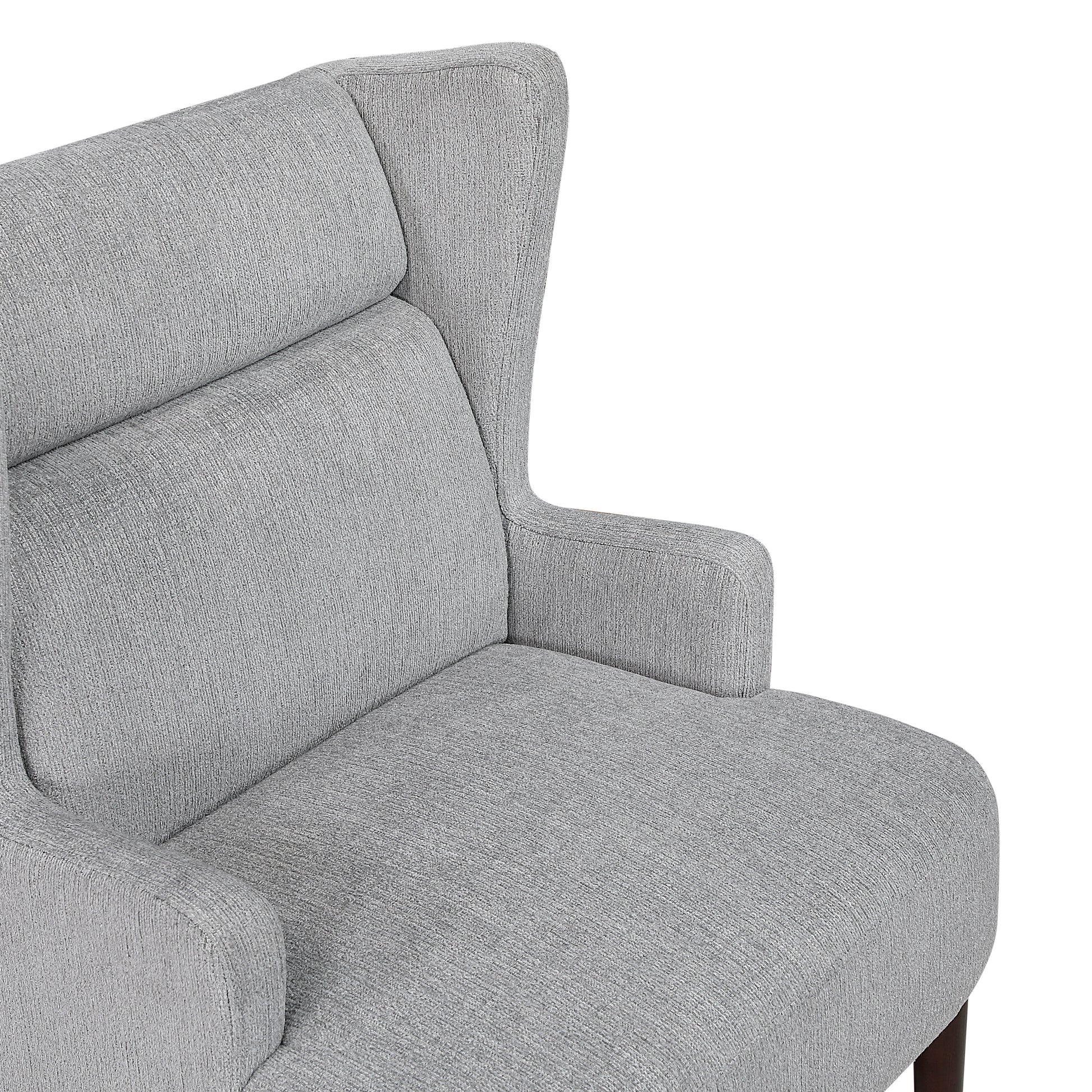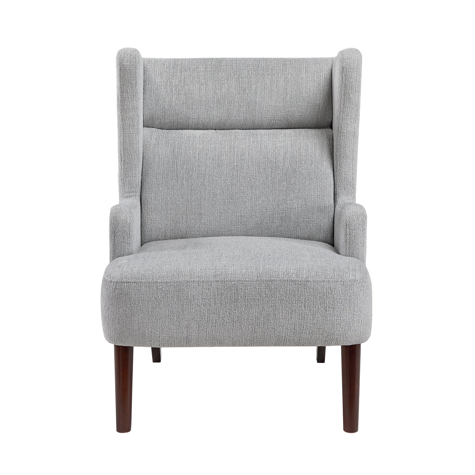 Introduce a touch of timeless elegance and exceptional comfort to your living space with this gray chenille wingback accent chair. Featuring a sturdy plywood frame and high-density foam seat cushions, this chair offers both durability and support. The soft chenille fabric upholstery adds a luxurious feel, while the classic wingback design creates a sophisticated focal point. The solid wood legs in an espresso finish provide a rich, contrasting foundation. With a 300lb weight capacity and easy assembly, this chair is perfect for enhancing your living room, bedroom, or reading nook with a blend of style and comfort.
