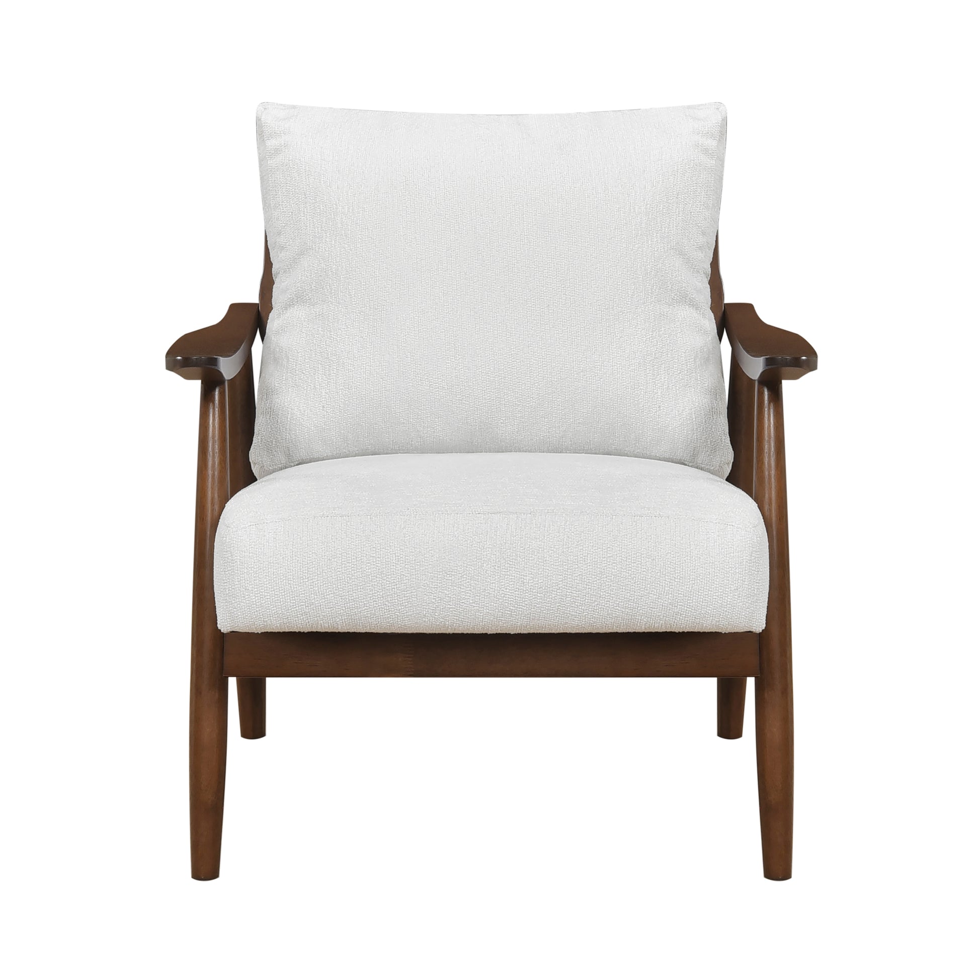 Bring a touch of classic mid-century modern design to your living space with this stylish wood accent chair. Featuring a slatted backrest crafted from rich, dark-stained wood, this chair offers a unique blend of visual interest and airy comfort. The soft, textured fabric cushions in a neutral tone provide a comfortable seating experience, while the clean lines and tapered legs embody the timeless elegance of mid-century aesthetics. Perfect for adding a sophisticated touch to your living room, reading nook, or bedroom, this chair effortlessly combines style and functionality.