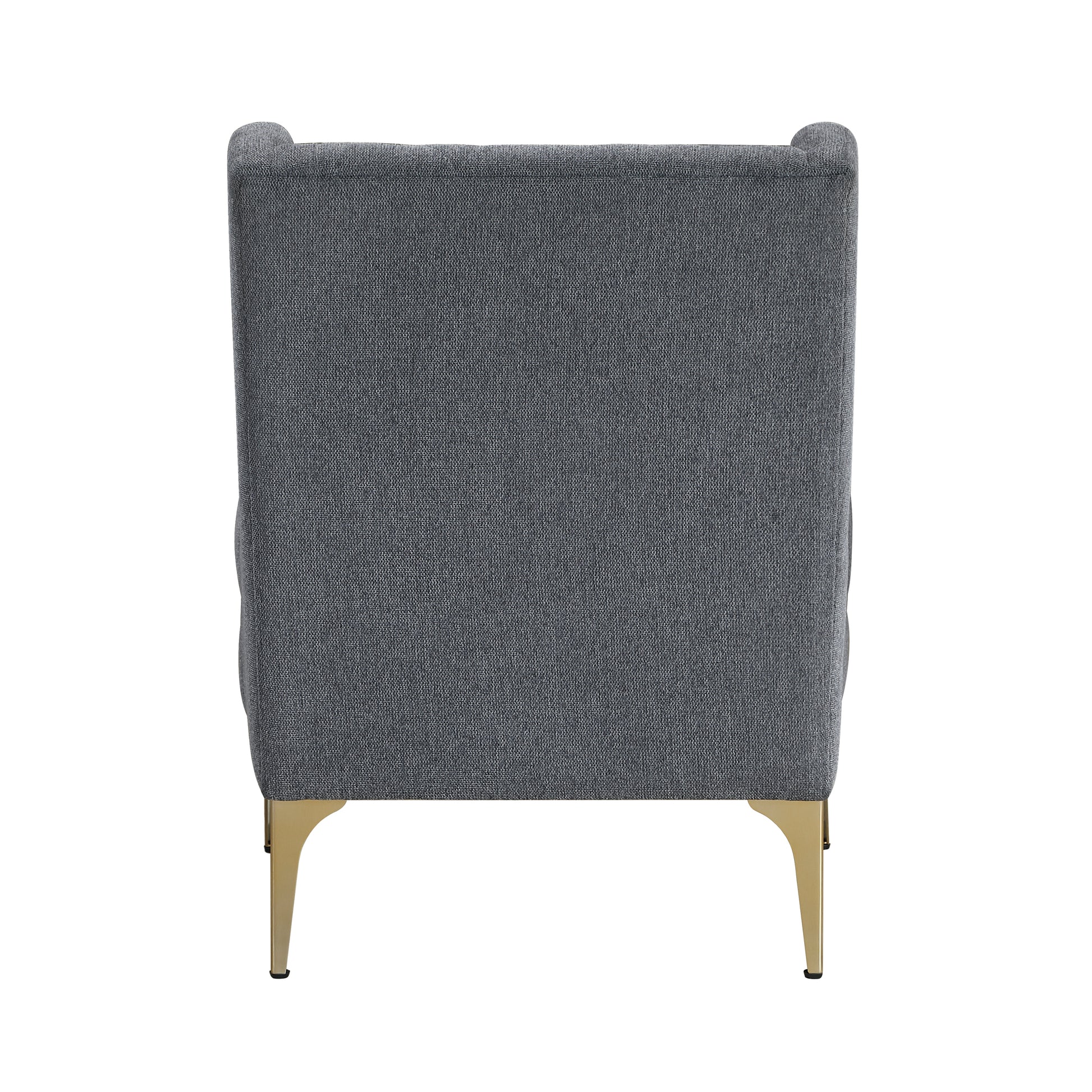 Add a touch of contemporary elegance and exceptional comfort to your living space with this dark gray chenille accent chair. Featuring a sturdy plywood frame, foam padding over pocket coils, and soft chenille fabric upholstery, this chair offers both durability and a luxurious seating experience. The diamond-stitched chair back adds a touch of modern sophistication, while the reversible seat cushion and removable cover make maintenance a breeze. The brushed gold finish metal legs provide a stylish foundation. With a 300lb weight capacity and easy assembly, this armchair is perfect for enhancing your living room, bedroom, or reading nook with a blend of style and practicality.