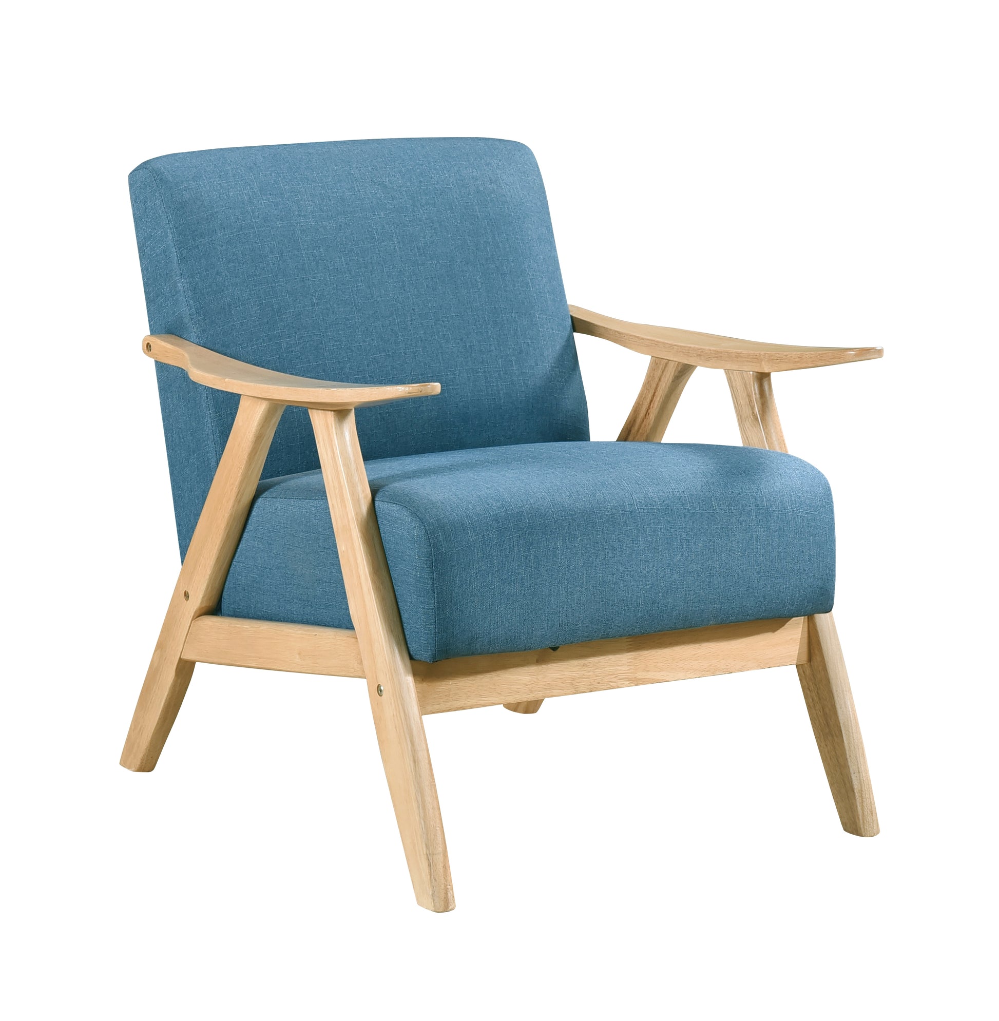 This mid-century modern lounge chair seamlessly blends classic elegance with modern comfort. Designed for both aesthetics and relaxation, this armchair features a solid wood frame with sleek, angled legs and gently curved armrests, providing durability and a stylish retro touch. The plush upholstered seat and back cushions are wrapped in a soft, on trend fabric that complements any décor, from contemporary to Scandinavian to farmhouse styles. Whether you're furnishing a cozy reading nook, adding extra seating to your living room, or upgrading your home office, this accent chair offers the perfect balance of support and comfort. The ergonomic design promotes relaxation, making it an excellent choice for lounging, socializing, or unwinding after a long day.
