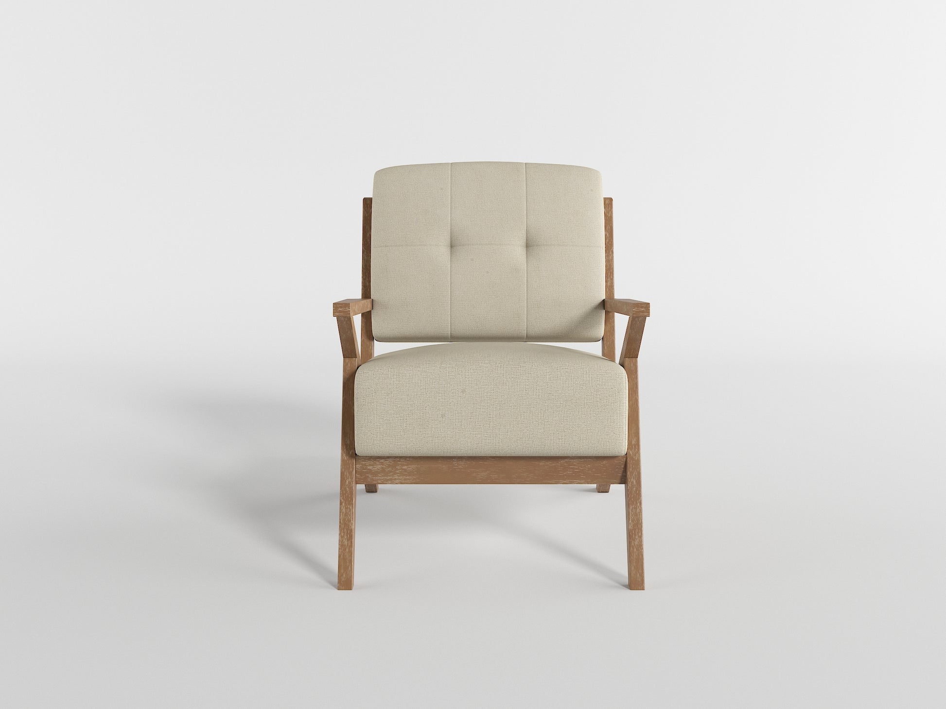 Angled lines intersect to create the modern profile of the Ollen Collection. The rusticated solid wood frame is highlighted with an antique walnut finish. The gray fabric upholstery that covers the seat and back of the chair will serve as a complement to your home’s décor. The padded seatback features tufted contouring for added accent.