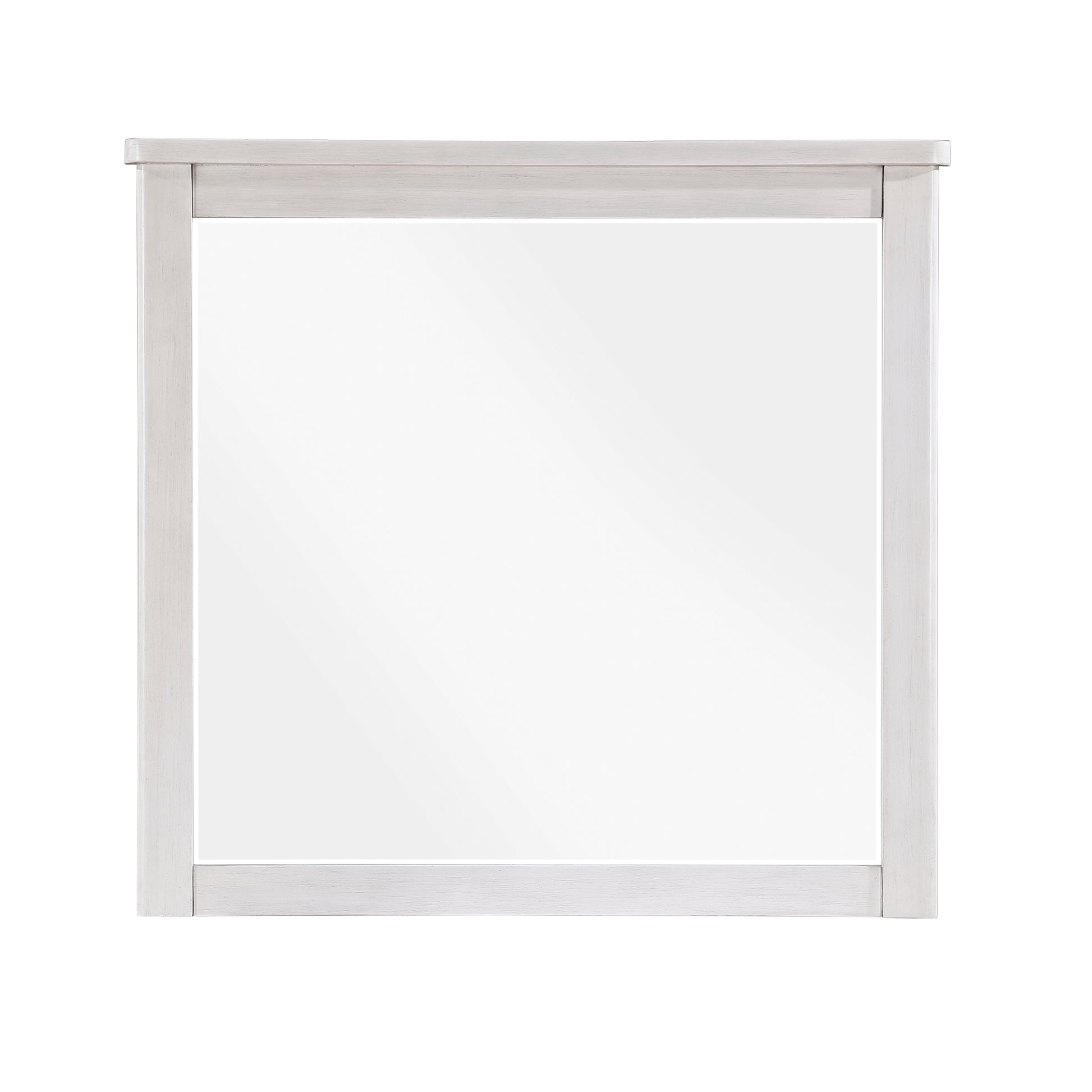 Hints of rustic styling permeate the transitional design of the Ambrose Collection, each subtle accent building to create a classic look for your bedroom. Antique White finish highlights the acacia veneer of the mirror's frame, providing unobtrusive accent to your bedroom's decor.