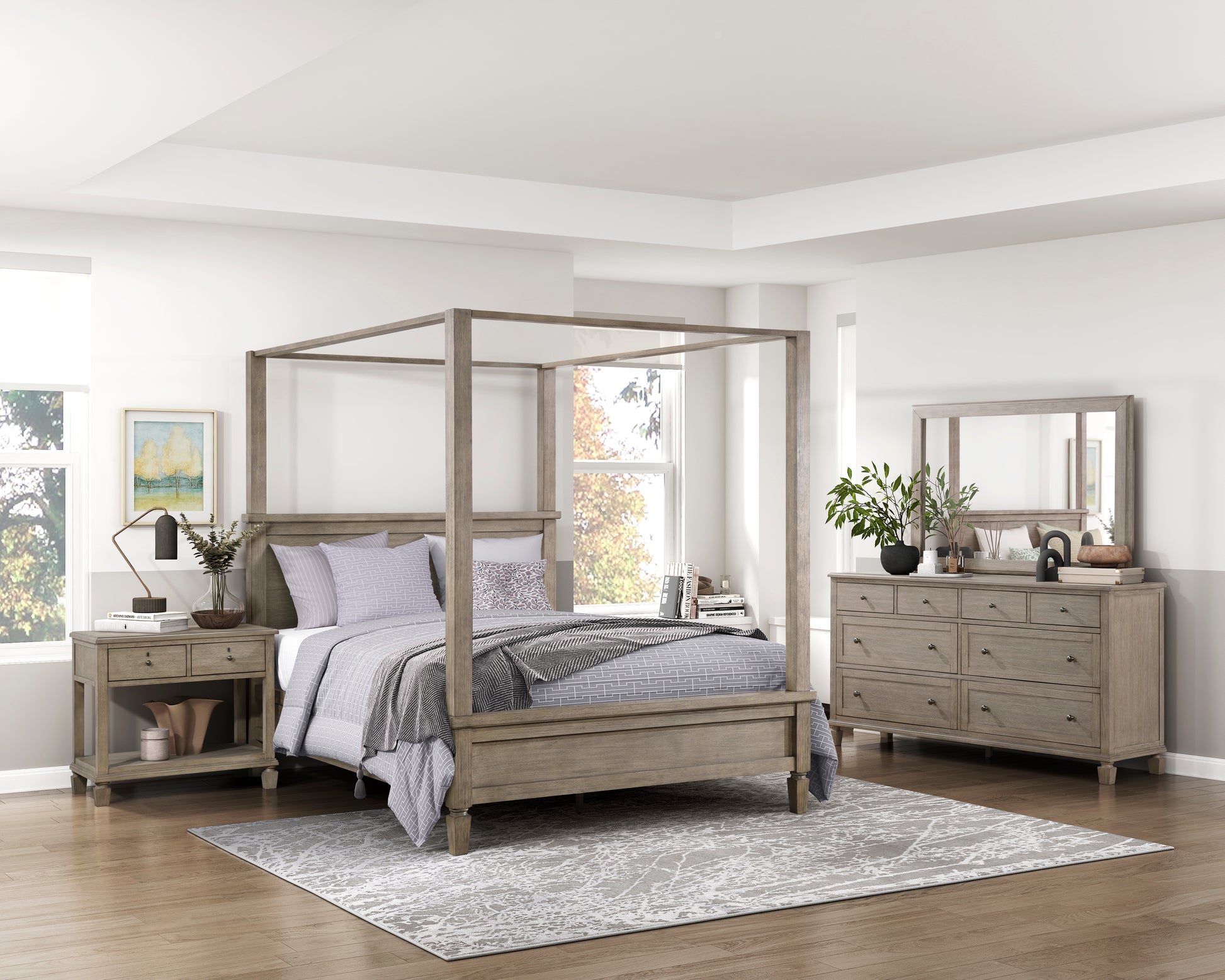 Transitional sensibility pairs with eye-catching elegance in the design of the Marceline Collection. The mirror’s classic picture-frame molding and gray oak finish lends a classic accent to your room’s décor.