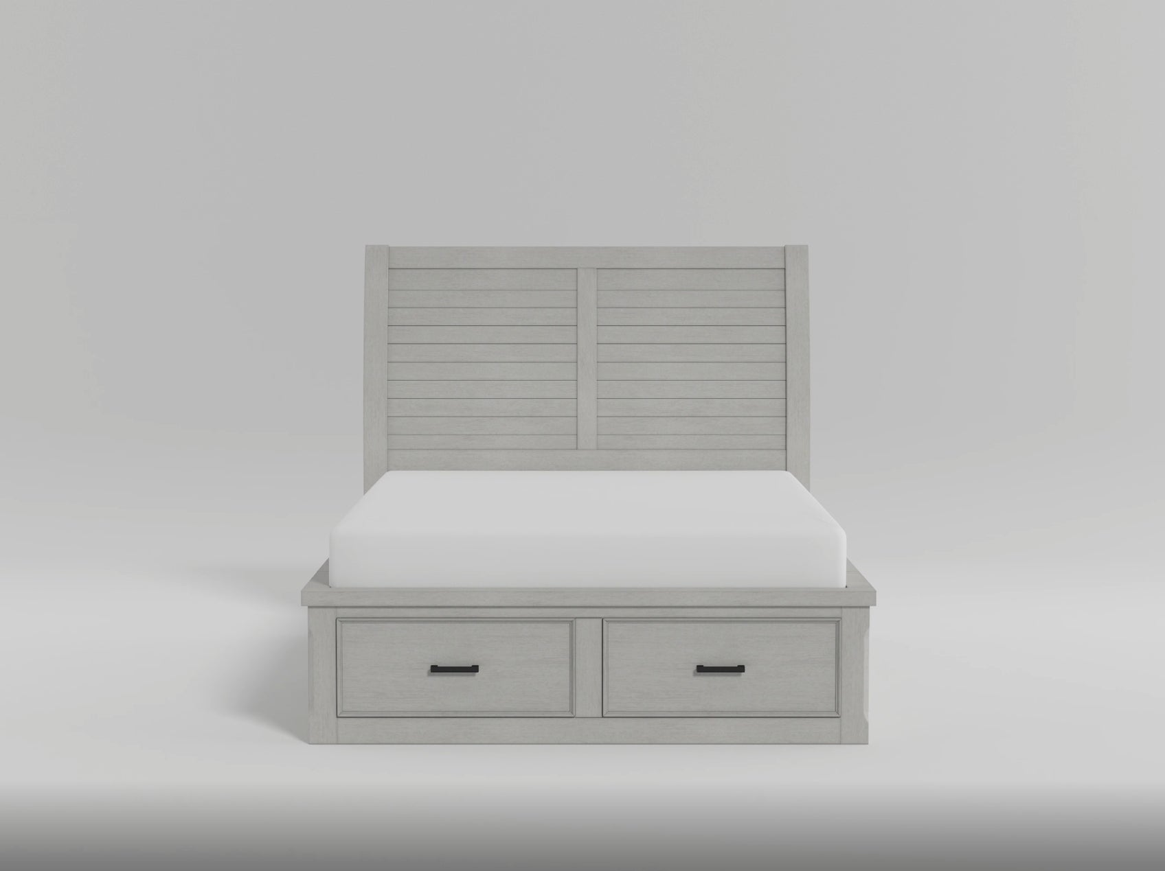 Elevate your bedroom with the Willowbrook Bedroom Collection, blending style and functionality. Featuring a bed with 6 total drawers, the collection includes a bed, dresser with mirror, chest and nightstand. Crafted from acacia wood and selected hardwoods with a sleek gray finish, the bed’s panel design adds a touch of modern sophistication. The dresser and nightstand offer ample storage with smooth-ball bearing glide drawers, perfect for organizing your essentials. This collection is ideal for anyone seeking a stylish and practical solution for their bedroom. Available in Queen, Eastern King and California King.