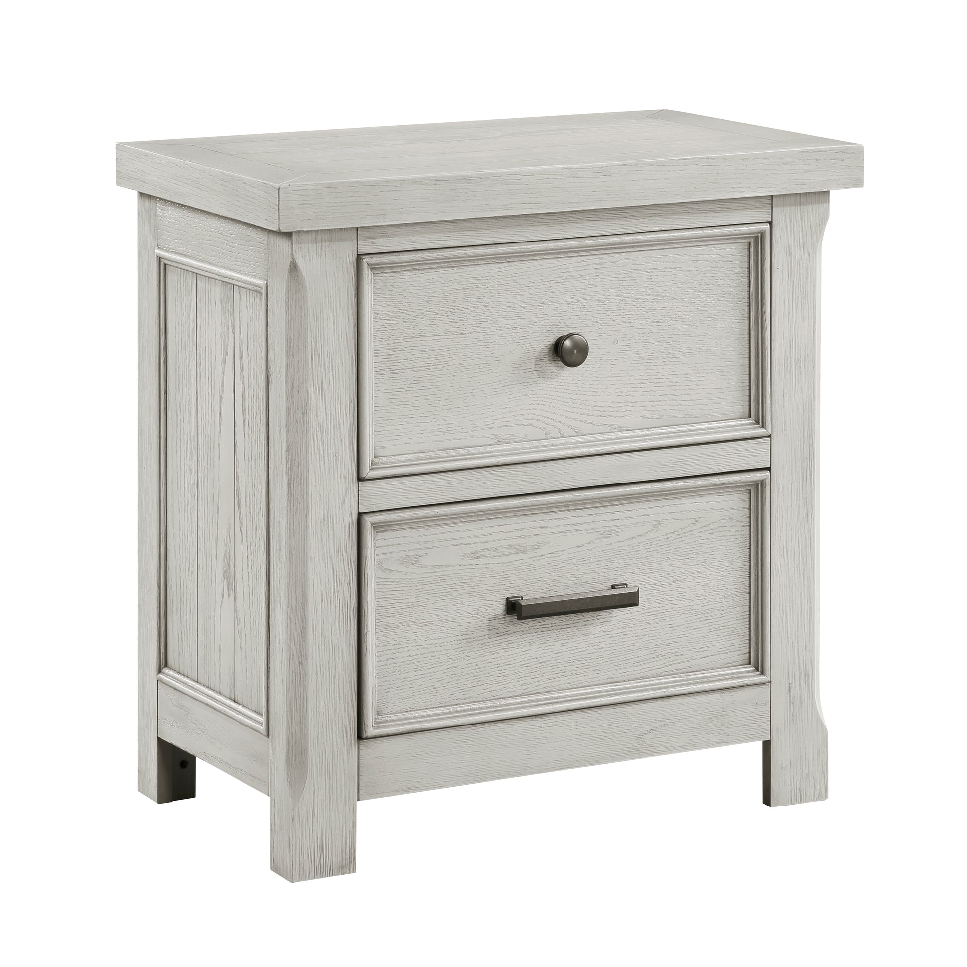 The Providence Collection’s lines and versatile finish create a classic addition for your bedroom. Oak veneer is finished in light gray, serving as a neutral canvas for your personal decorative preferences. The antique black tone metal knob and bar hardware provide complementing contrast to the light finish of the nightstand.
