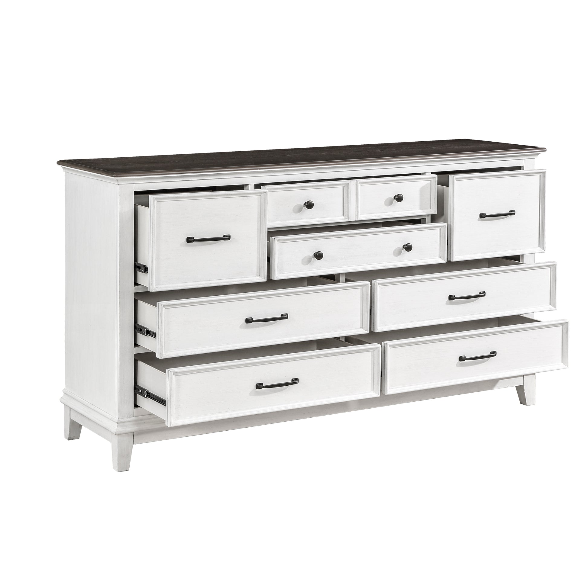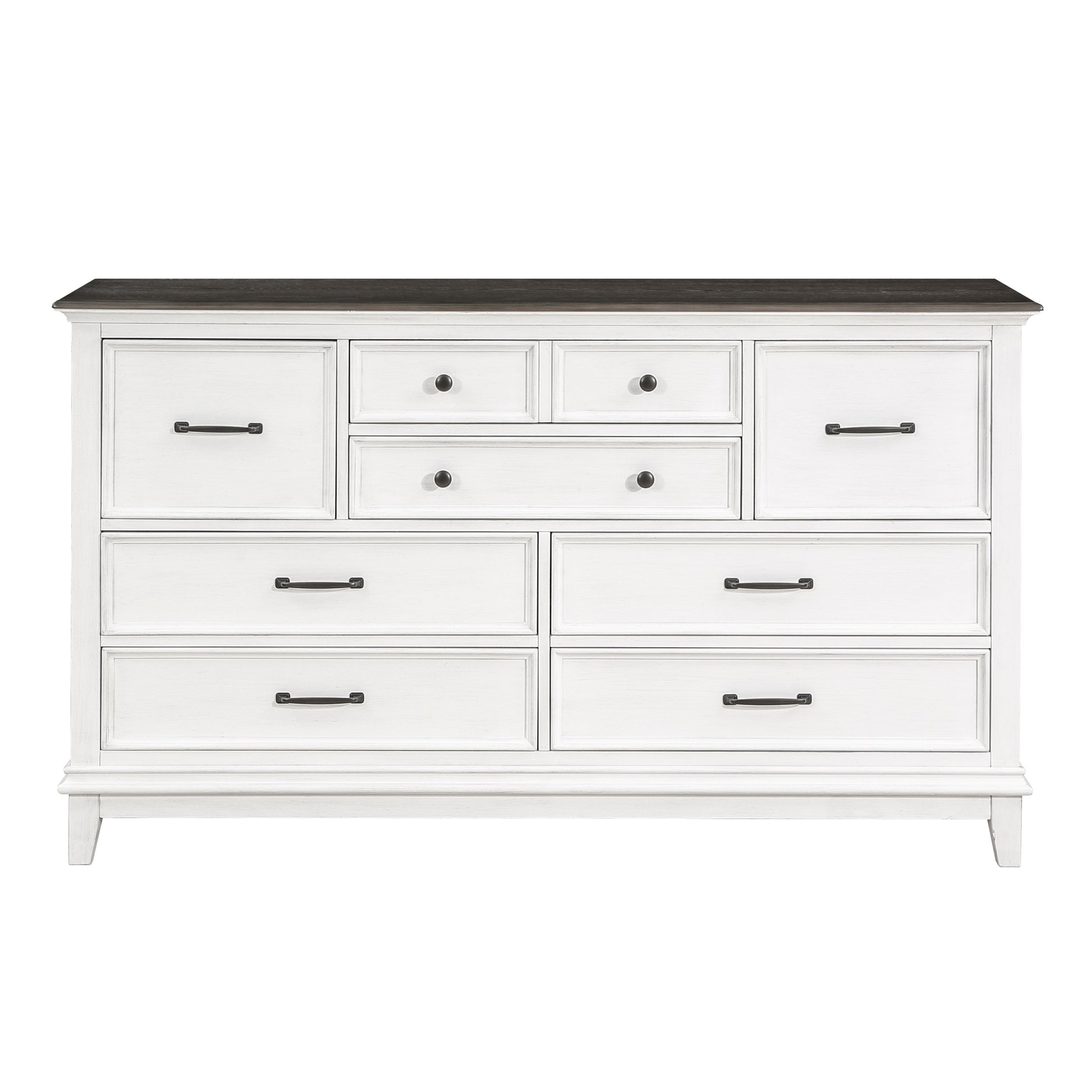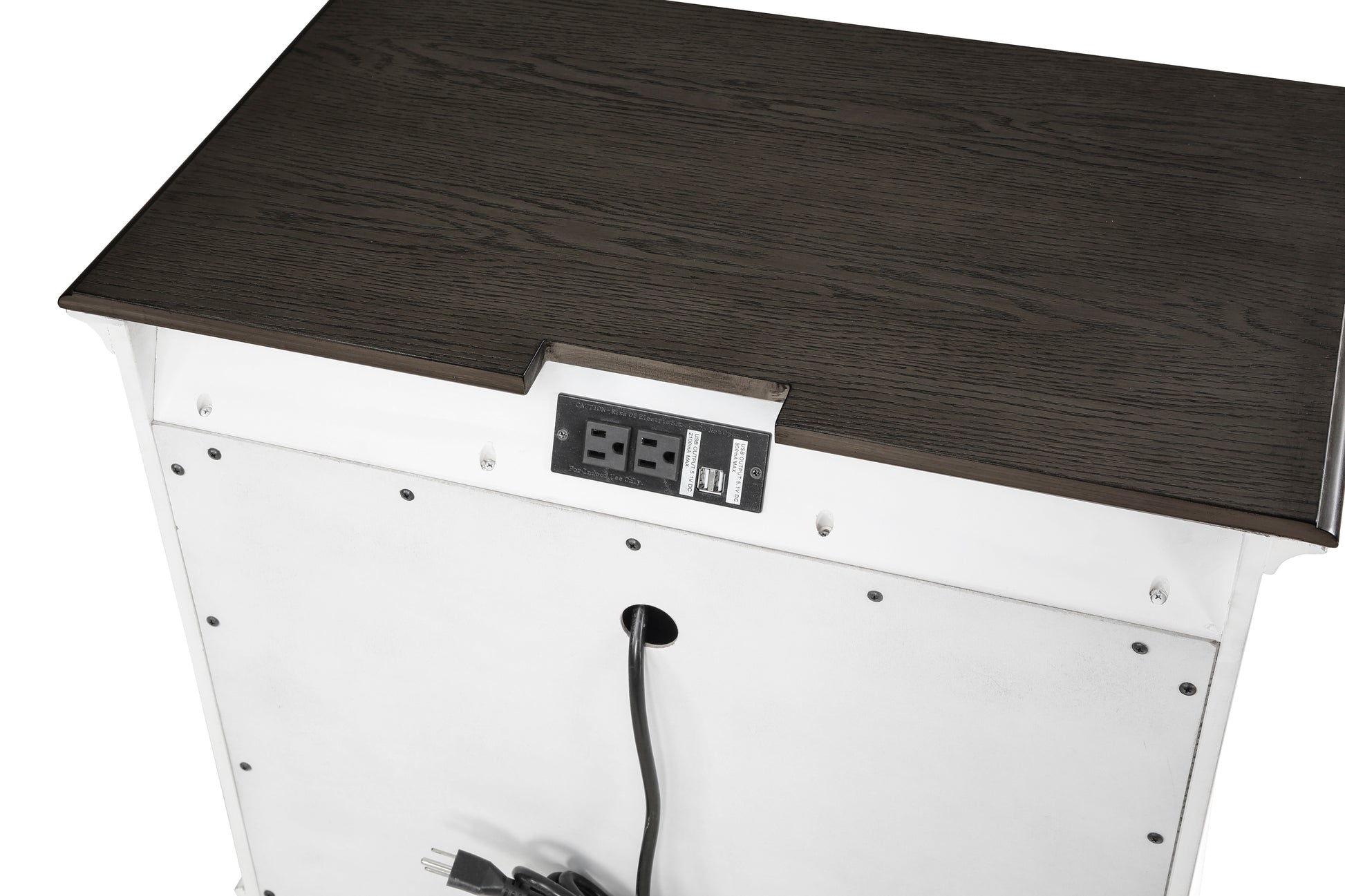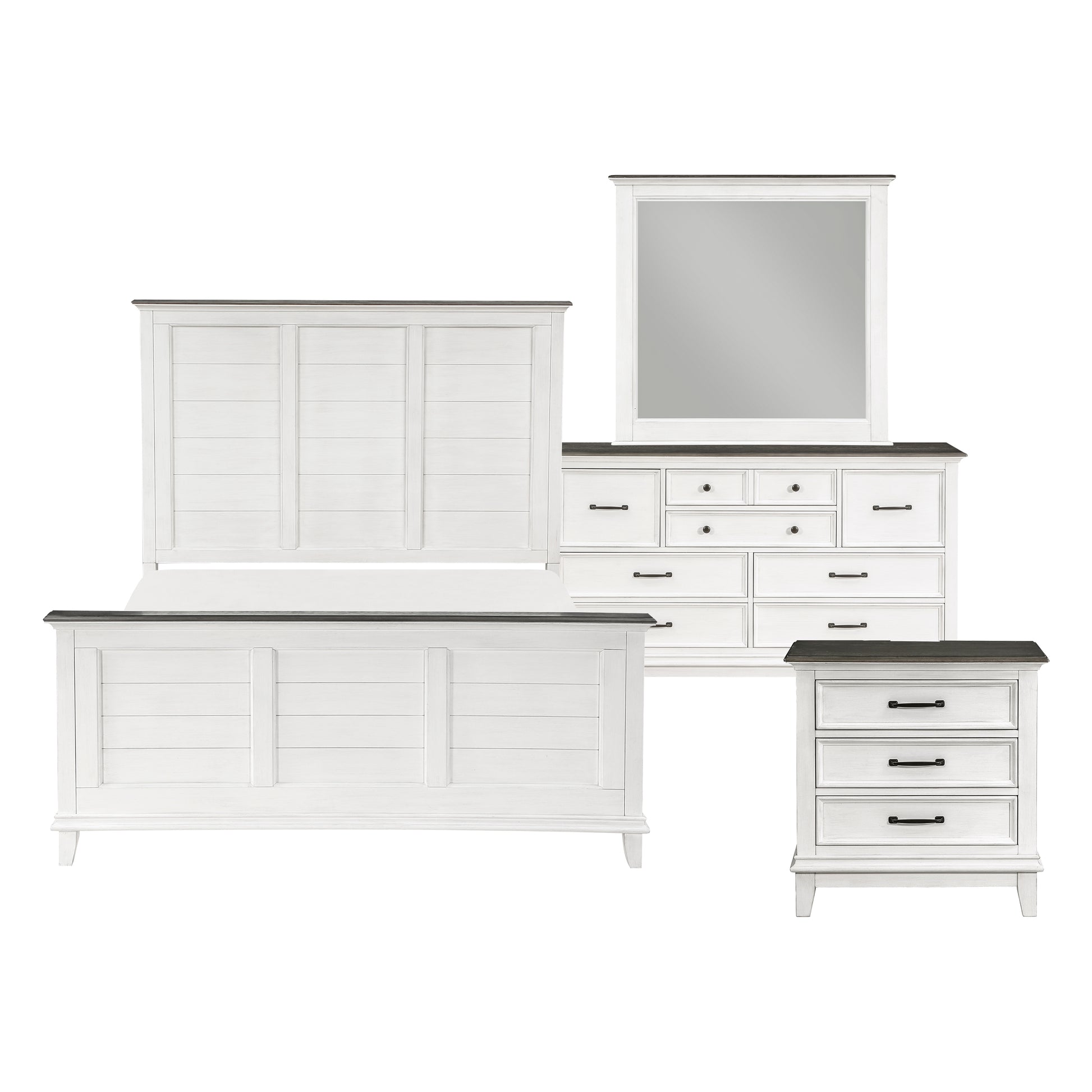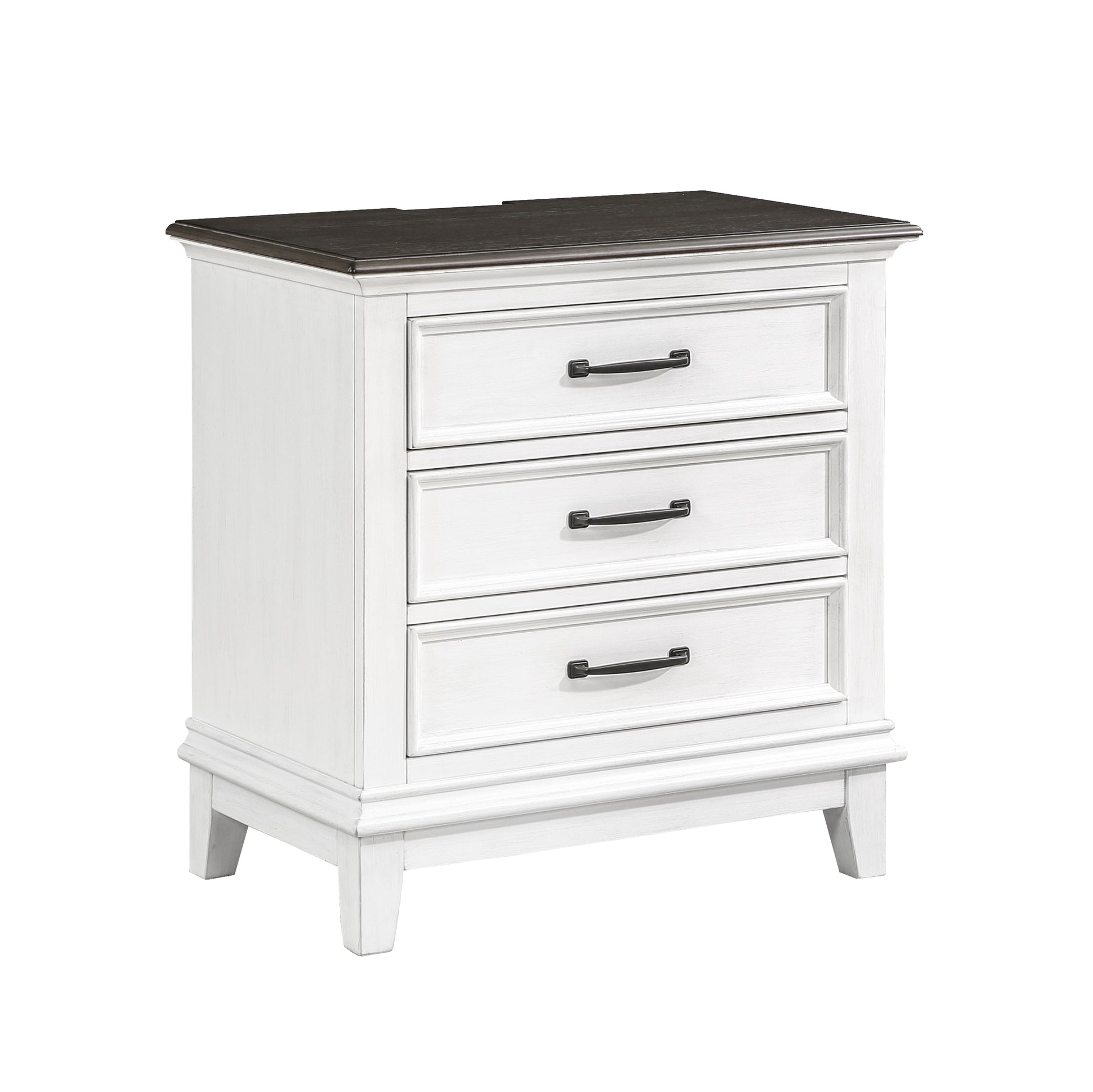 Exuding the aesthetic of casual country living, the Chesterton Collection’s classic lines create a look that perfectly captures your preference for farmhouse design. The two-tone finish of the collection is a warm contrast of dark brown and antique white. The knob and bar hardware that fronts the drawers of the dresser, nightstand and chest provide distinct complementing contrast to the collection’s finish. Providing modern functionality to the nightstand is the back-mounted USB and power receptacles, allowing for convenient access to your electronic devices as they charge.
