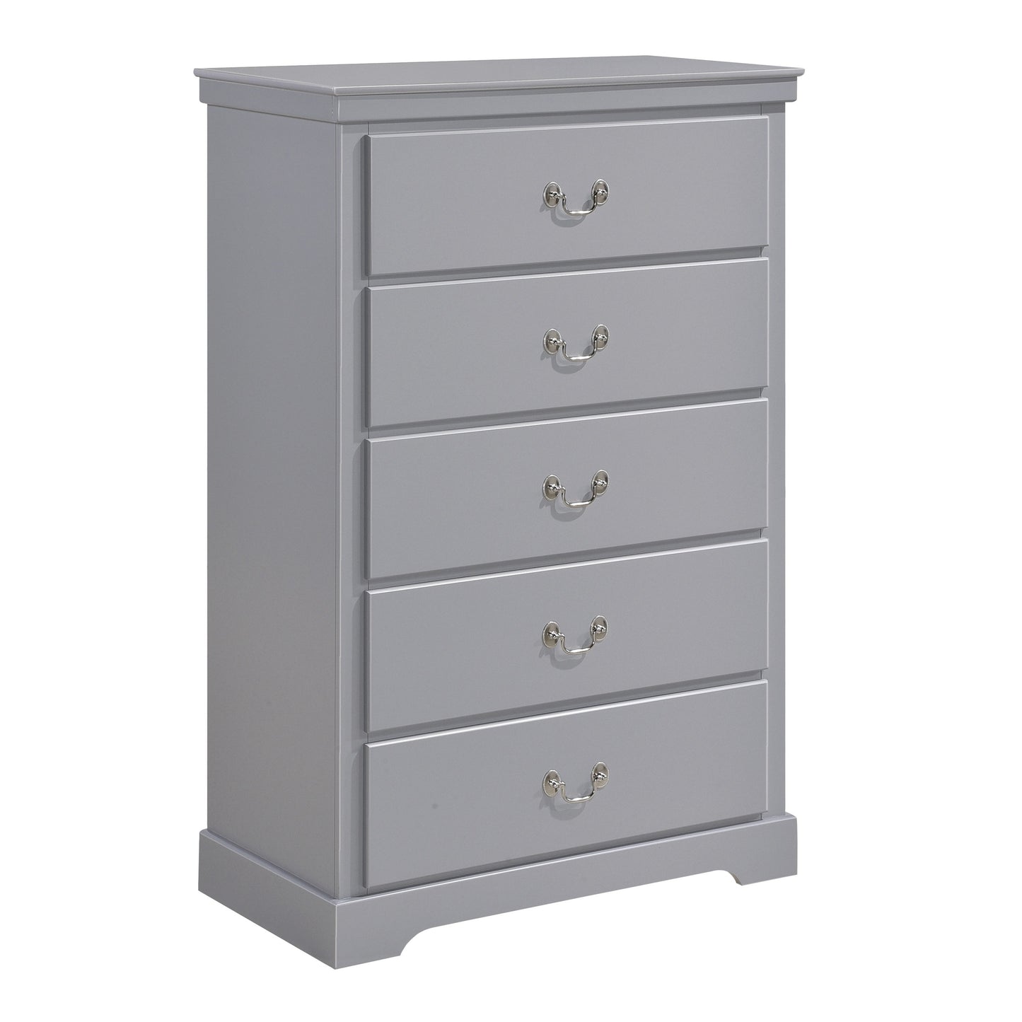 Merging traditional and transitional design creates the look of the Seabright collection, providing a unique platform from which to style your bedroom. The gray painted finish allows for excellent versatility of placement and decorative inspiration. The traditional styling of the satin nickel bale and pull hardware complements the chest lending to the classic profile.