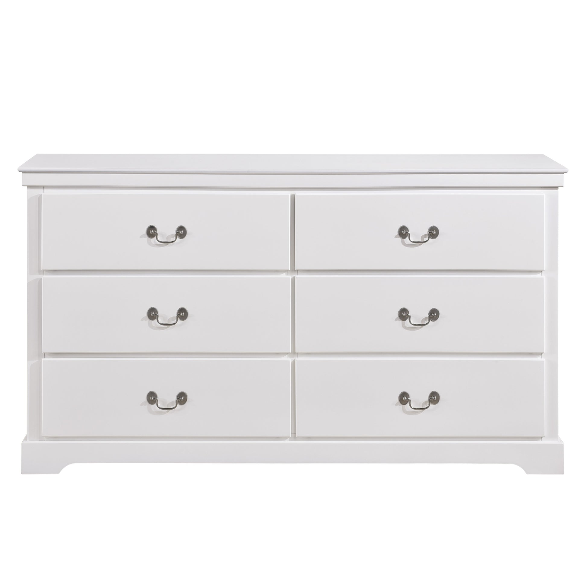 Merging traditional and transitional design creates the look of the Seabright collection, providing a unique platform from which to style your bedroom. The white painted finish allows for excellent versatility of placement and decorative inspiration. The traditional styling of the satin nickel bale and pull hardware complements the dresser lending to the classic profile.