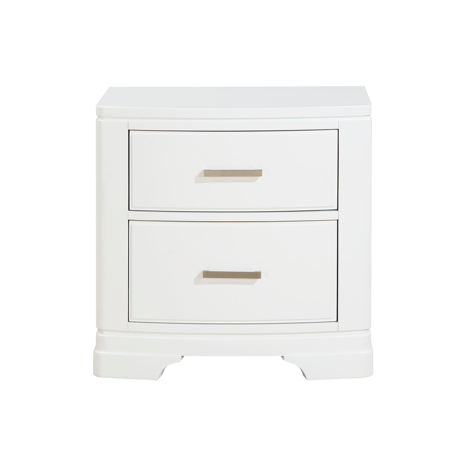 The intersection of modern lines and understated transitional style blend to create the Hudson Collection. The white finish of the nightstand presents a decoratively versatile addition to your bedroom. Polished chrome bar hardware fronts the drawers of the nightstand.
