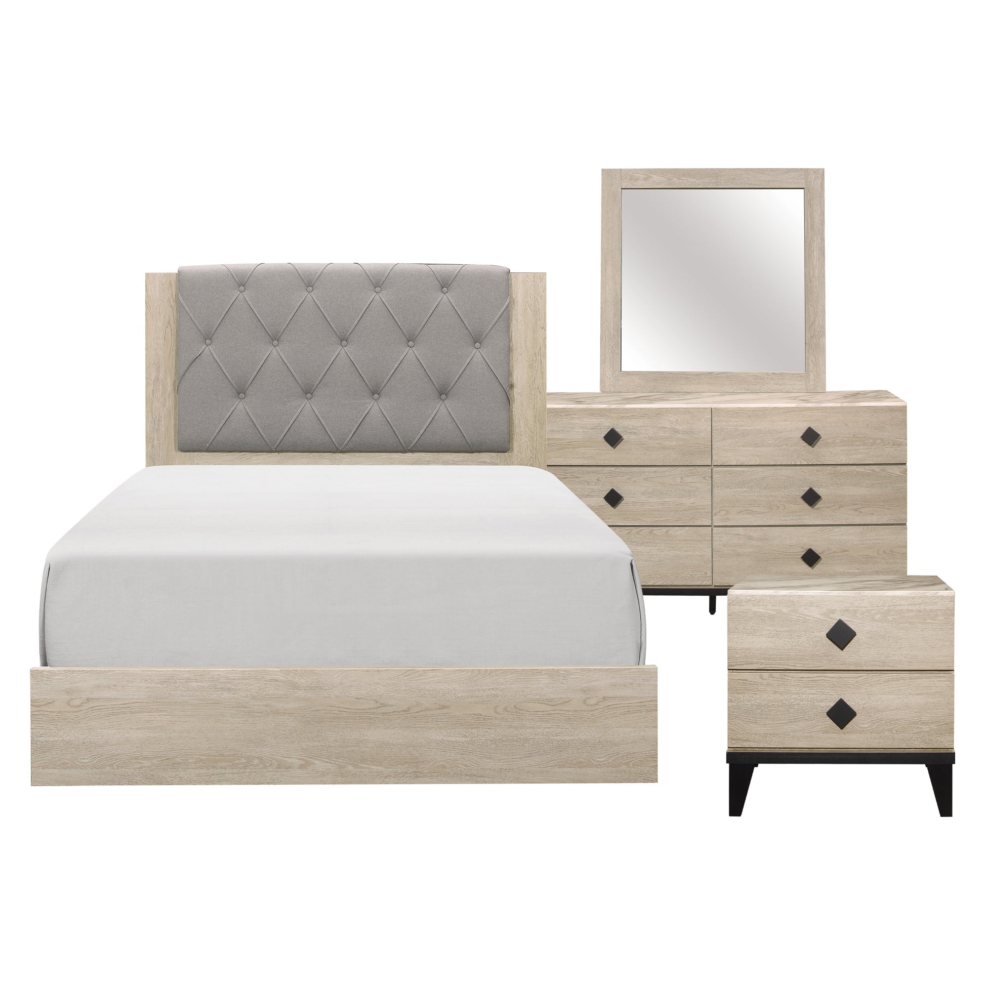 - Bedroom set includes queen bed, nightstand, dresser and mirror