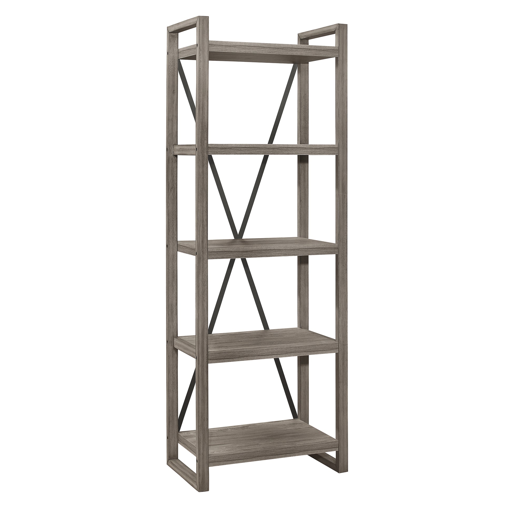 Following the trend of rusticated simplicity is the Bainbridge Collection. Melamine laminate perfectly mimics the look of weathered gray wood, lending to the rustic style. The transitional framing of the bookcase side pier allows for placement in myriad home settings, creating the perfect canvas for your preferred decorative style. The bookcase’s profile is comprised of continuous exterior framing supported by metal X-back supports. The unit allows for open display and convenient storage within your casual living space.