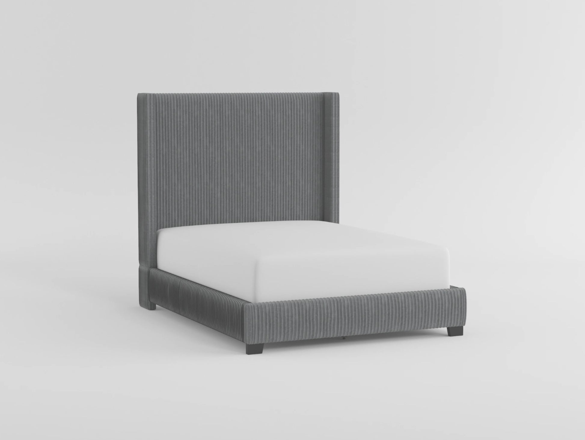 The stately profile of the Glenbury Collection will provide a dramatic statement to the design of your bedroom. The fully upholstered full size bed features pleated dark gray velvet covering and mansion shelter headboard, creating a modern traditional look that defines your personal style.