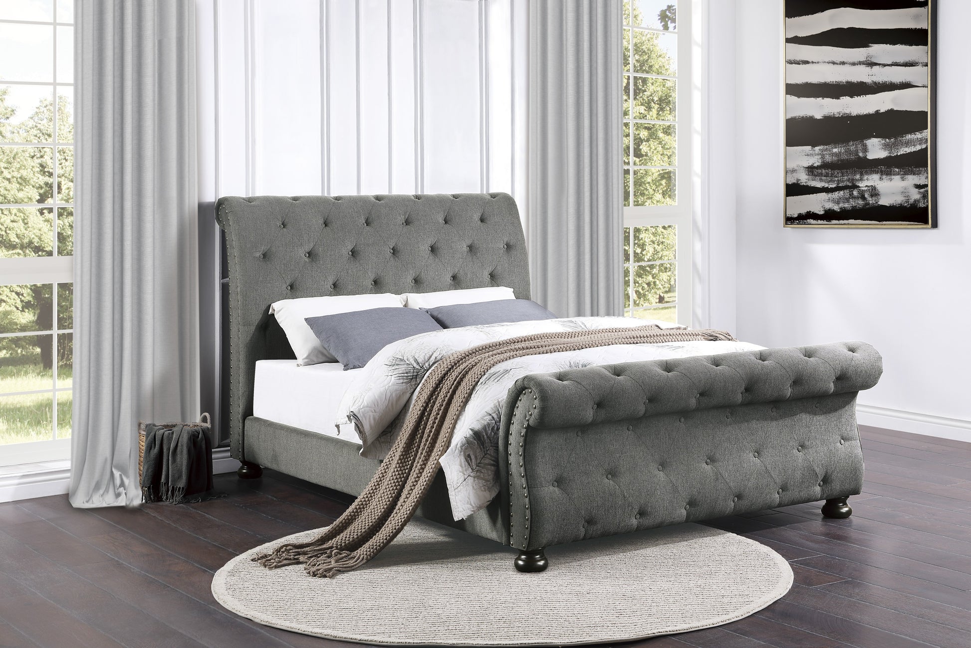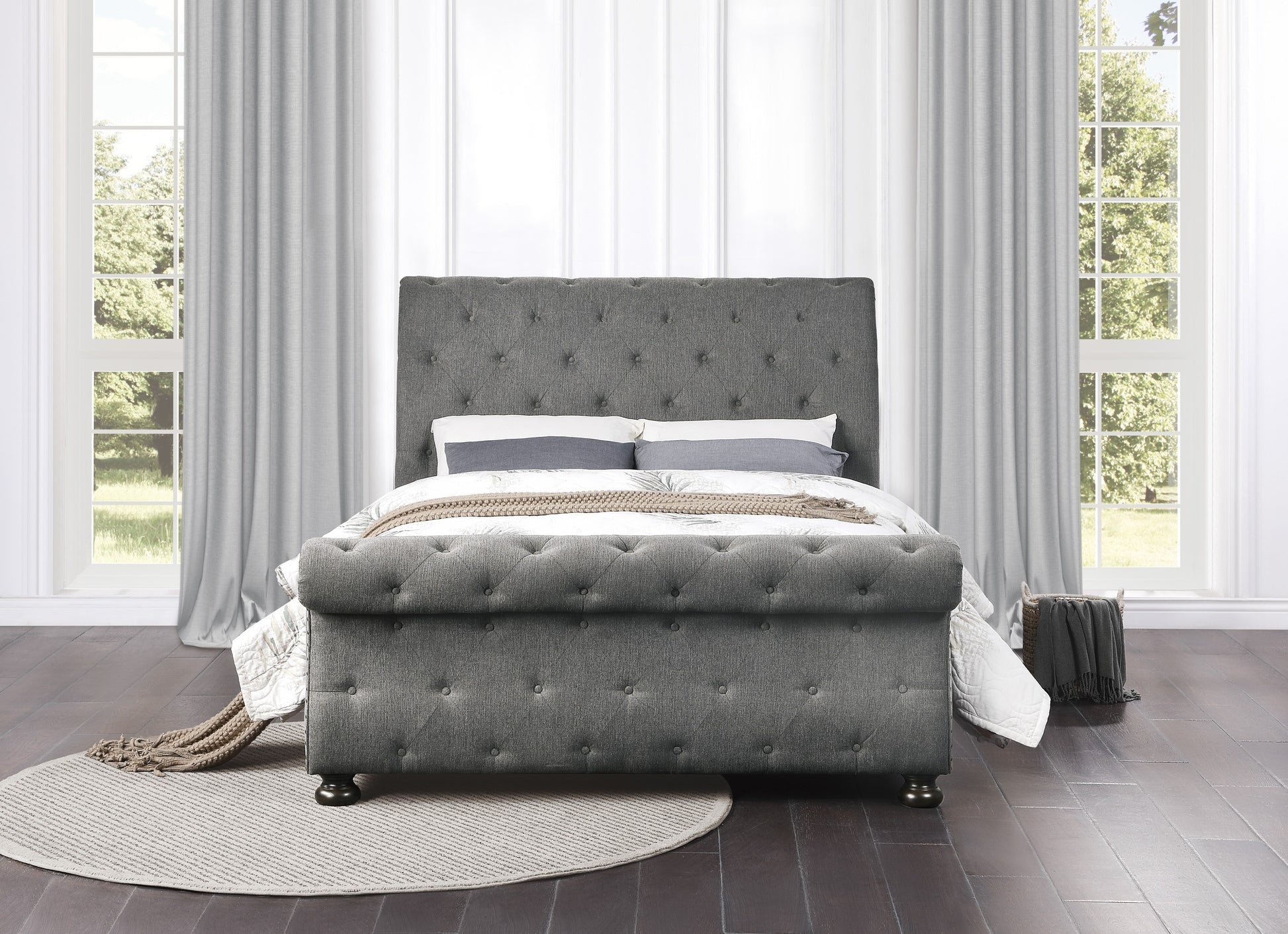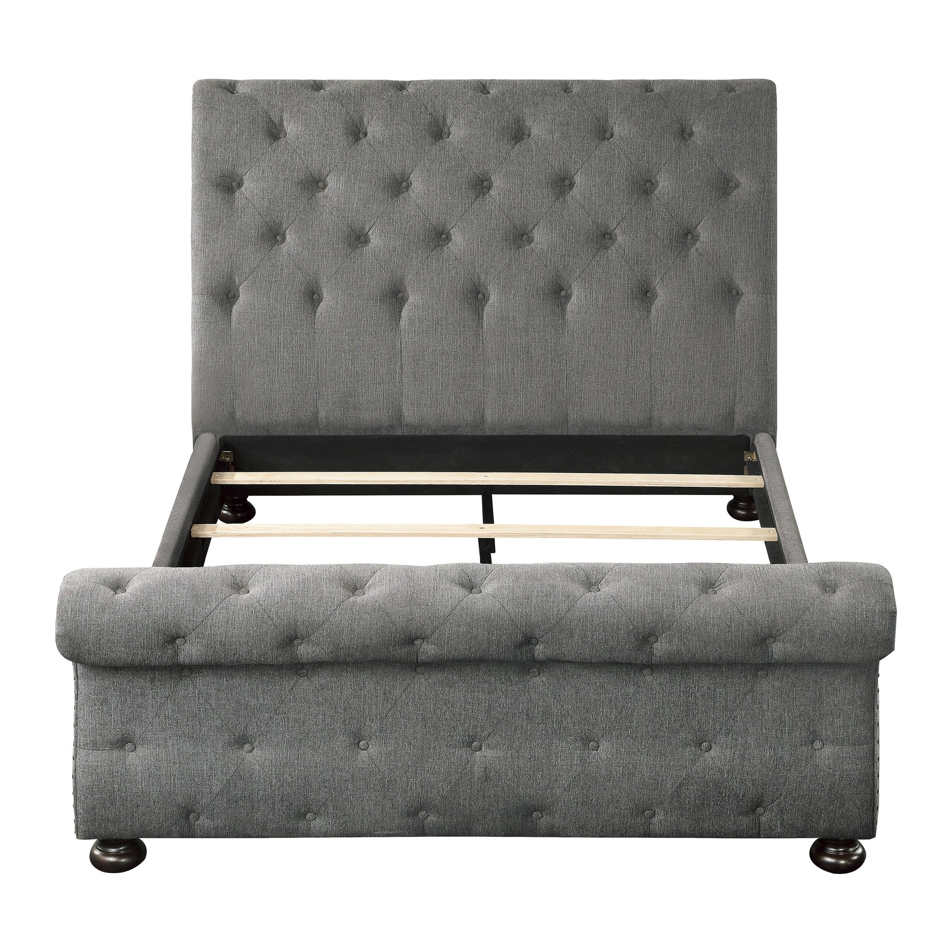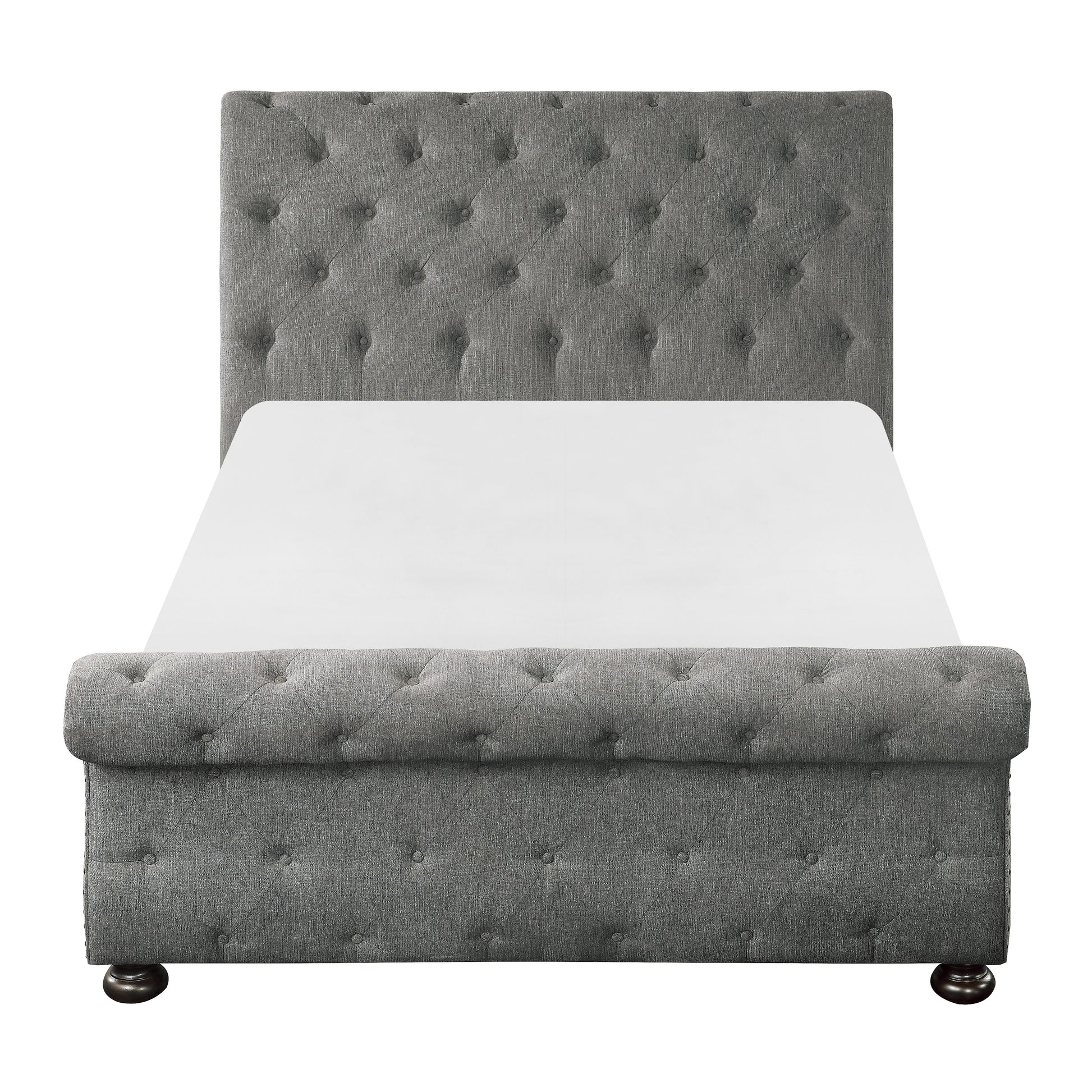 - Button-tufted sleigh headboard and footboard