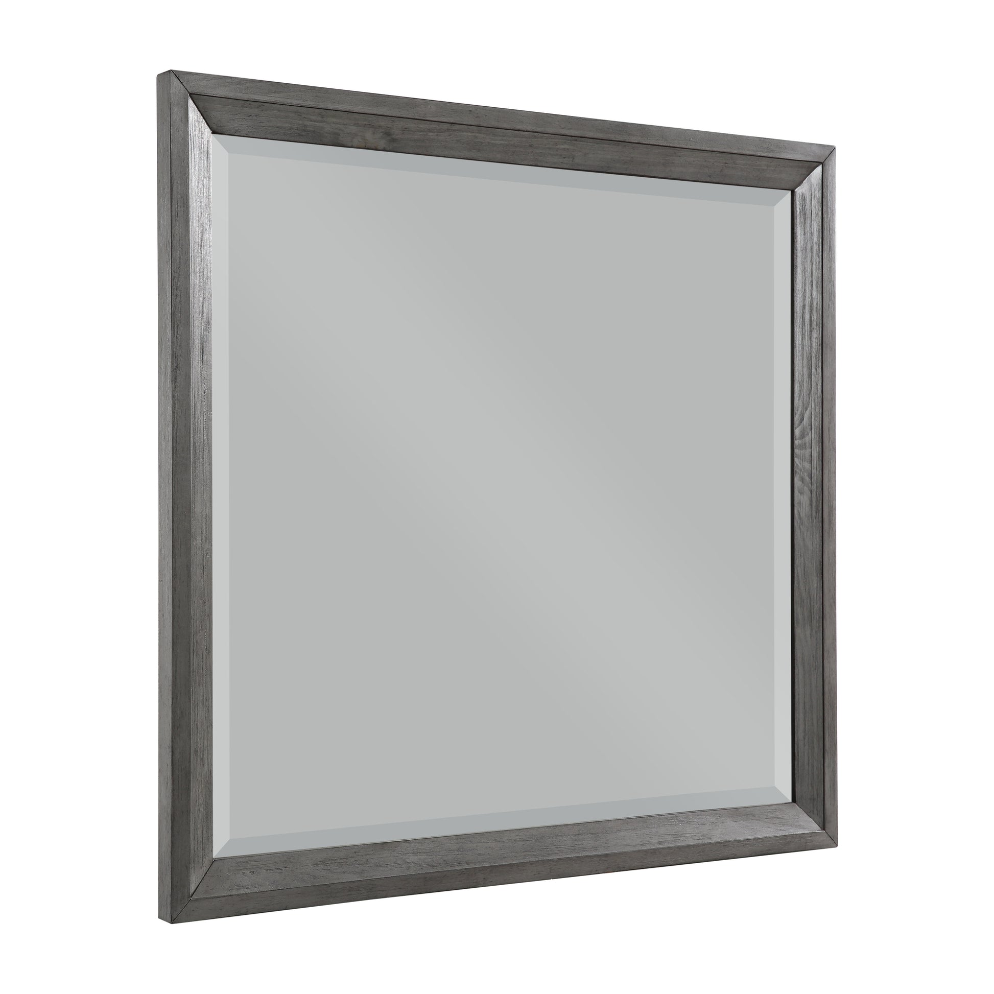 Modern styling is achieved by pairing classic design elements with eye-catching bold lines culminating in the chic look of the West End Collection. Painted silver accent subtly frames the diamond-patterned gray faux leather fronts of the case pieces and bed, each providing complementing contrast to the gray wire-brushed finish of the collection’s birch veneer. Square nickel finished hardware fronts each drawer, furthering the modern look of the West End Collection.