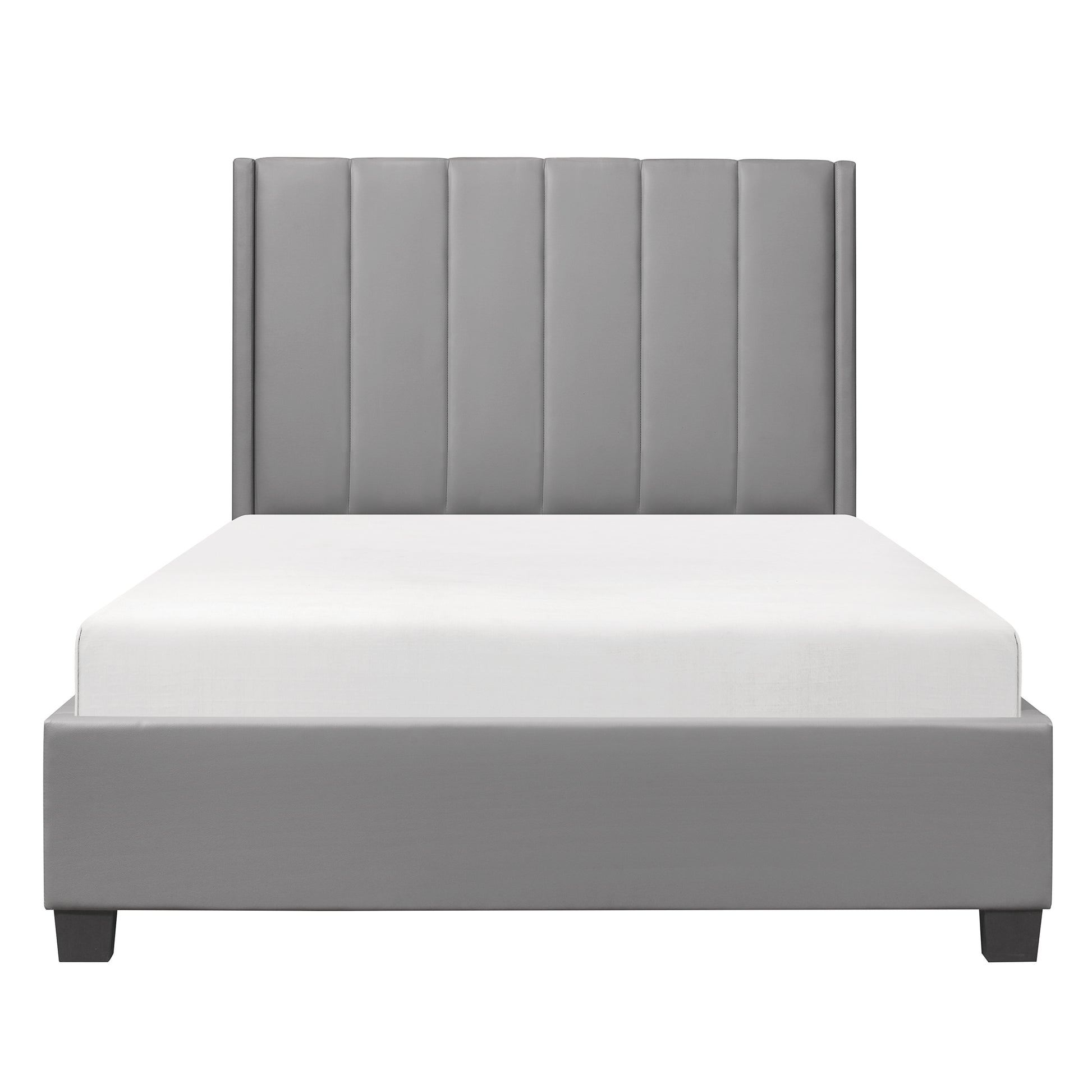 The clean lines of the Anson Collection lend distinct style to the modern look of your bedroom’s décor. The neutral gray faux leather of the Queen size upholstered bed allows the perfect palette to decorate your space. The channel-tufted headboard further lends to the modern profile of low-profile platform bed.