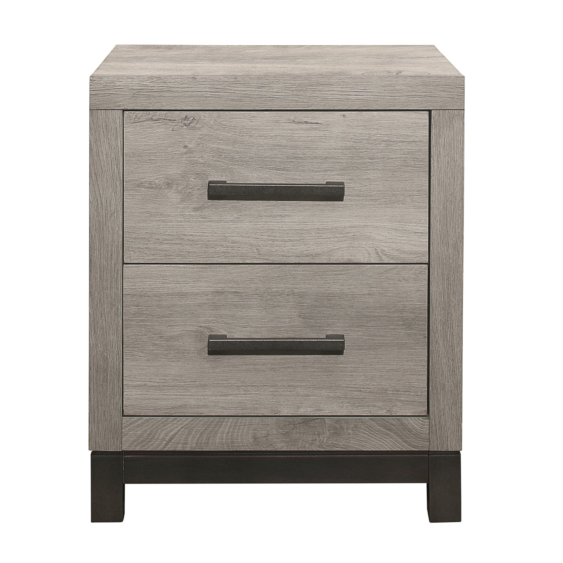 The sleek design of the Zephyr Collection pairs clean lines with modern convenience to create a style that will be the perfect palette for your design aspirations. The collection’s nightstands flank the low-profile bed, creating a wall-paralleling seamless transition between the pieces. Visually tying the collection together are the painted metal-finish banding of the headboard’s sides and the case piece’s base rails, as well as the metal bar hardware that fronts each drawer, culminating in an accenting contrast to the gray faux wood finish of the melamine veneer.