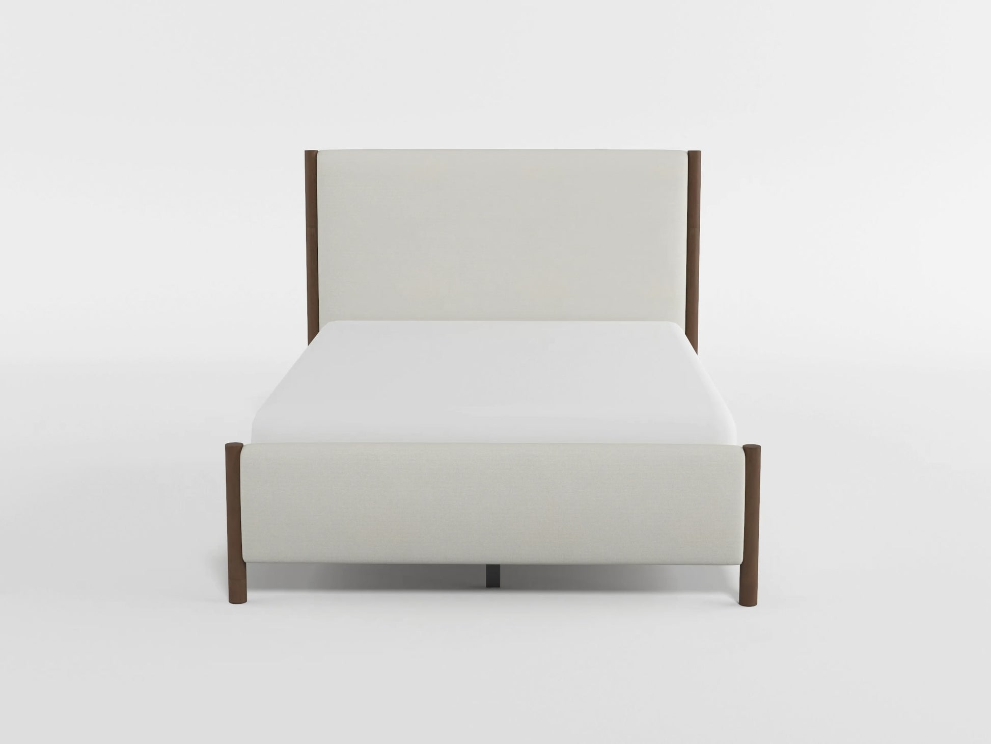 The subtle modern design that defines the Julian Collection utilizes color and texture to create a stylish bed option for your bedroom. The soft beige chenille fabric upholstery that covers the California King headboard, footboard and rails is contrasted by the oak finished wood pilasters of the bed’s four corners. The platform slat configuration allows for the use of a mattress only, eliminating the need for foundation support.