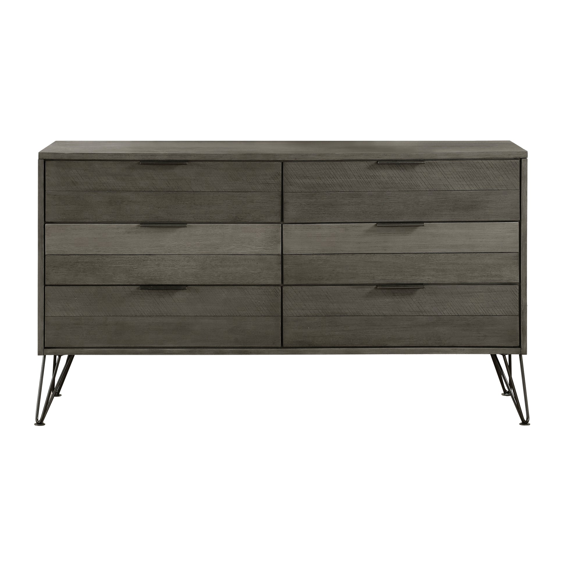 Perched atop metal legs, creating a dramatic statement of contemporary styling, the Urbanite Collection is a perfect reflection of your modern style preference. The solid acacia wood with acacia veneer is highlighted by a 3-tone gray finish that allows the variance of the natural grain to shine. The horizontal slat design as well as metal pull tab hardware lend to the clean, contemporary look of the collection.