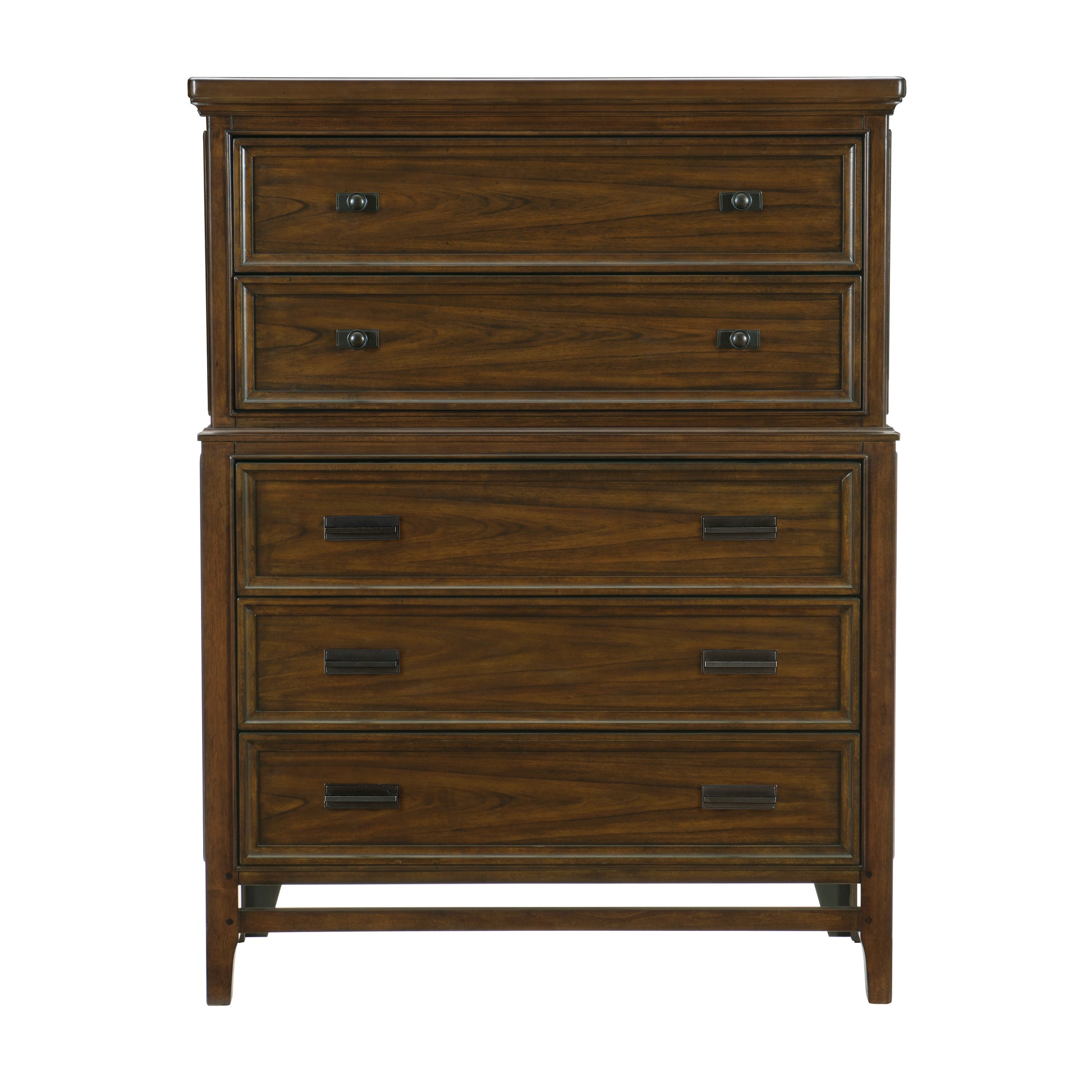 With a subtle lodge look that takes inspiration from design history, the classic styling of the Frazier Park Collection will help you create a bedroom environment that is a reflection of your preference for traditional spaces. The brown cherry finish that highlights the mindy veneer provides rich character to the wood’s grain. Knob and pull hardware front the drawers lending subtle contrast to the chest’s finish.