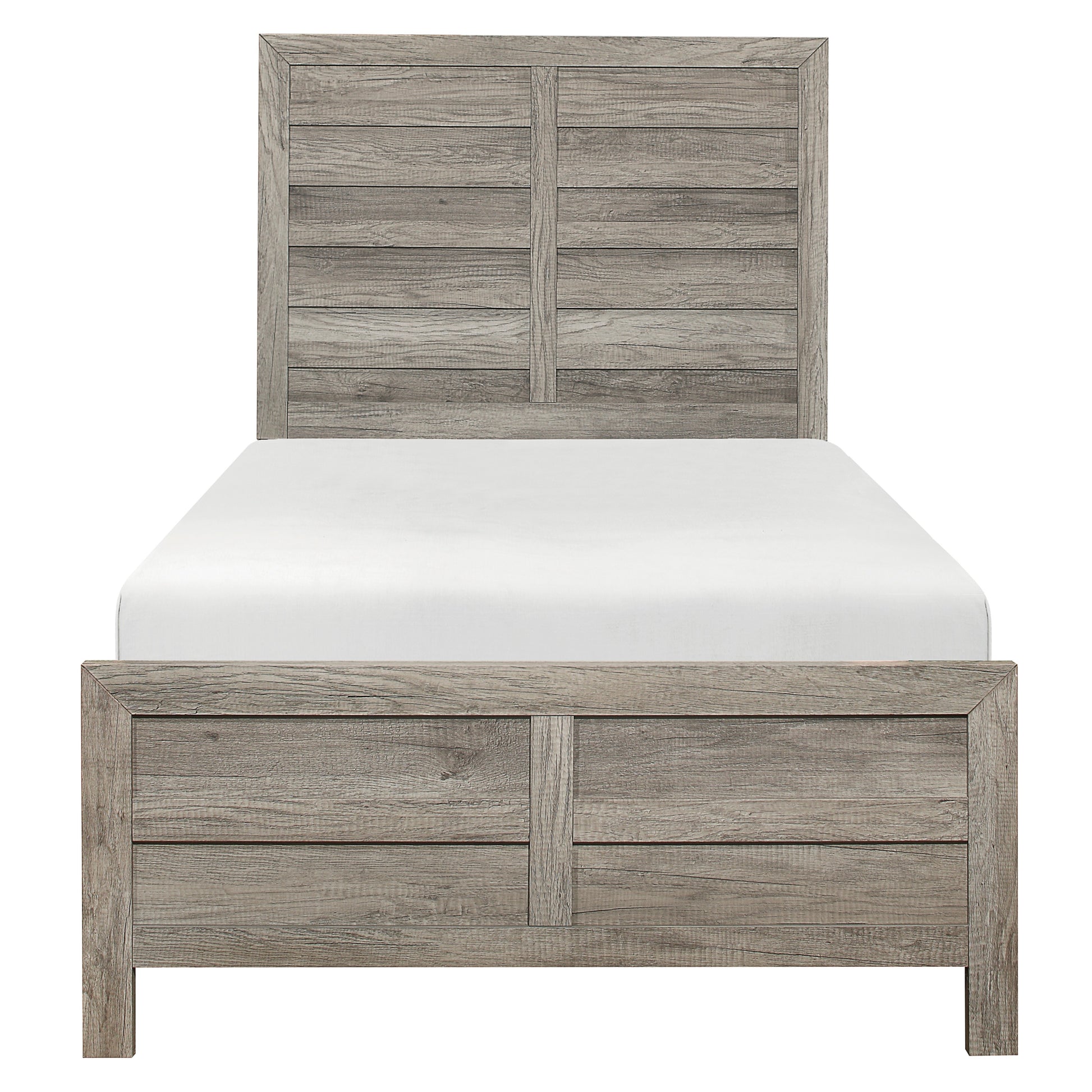 The modern lines of the Mandan Collection are blended with transitional aesthetic to create a unique offering for your bedroom. Utilizing faux wood veneer creates the look of authentic wood planks with the gray finish further lending to the rusticated style of the Twin size bed.