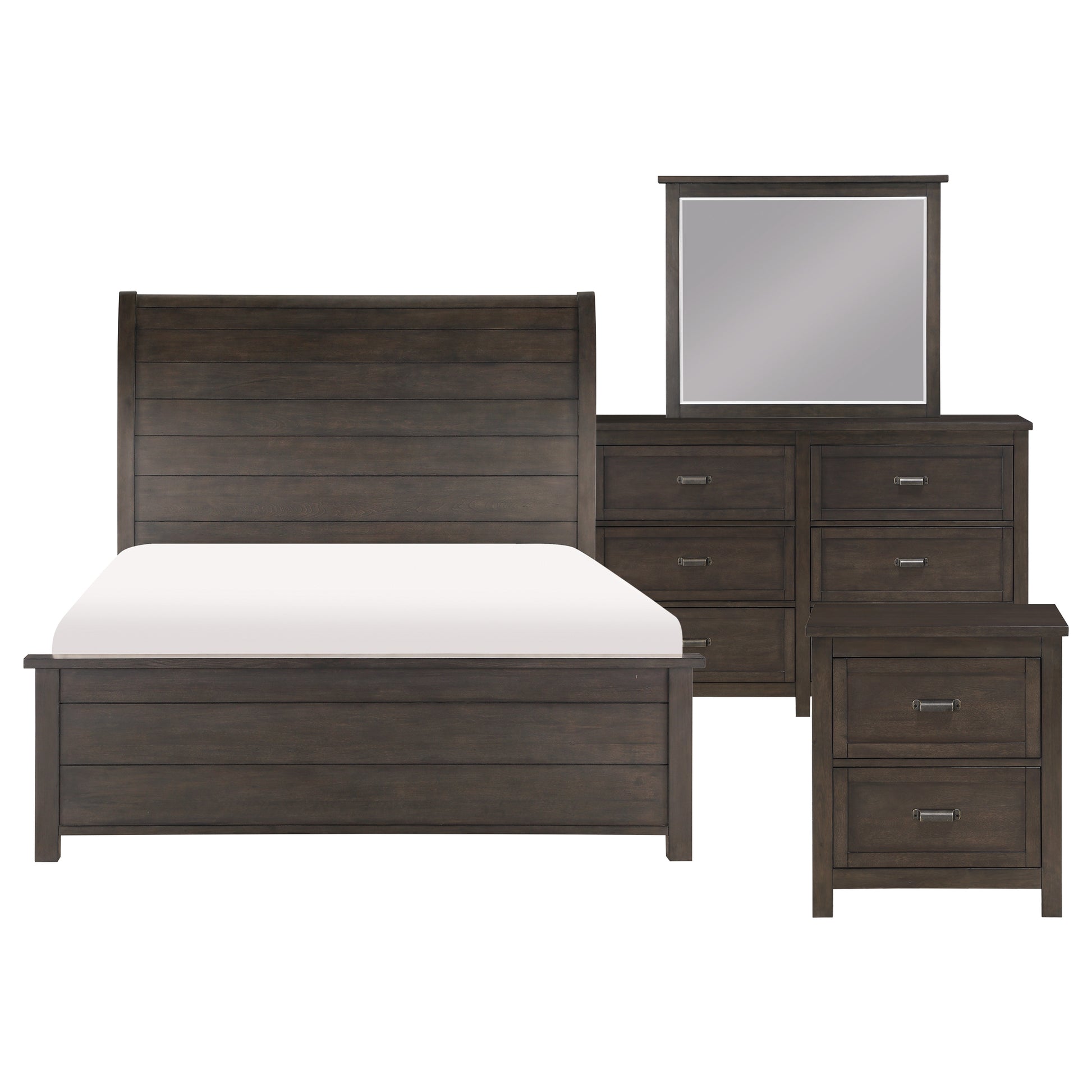 - Bedroom set includes queen bed, nightstand, dresser and mirror