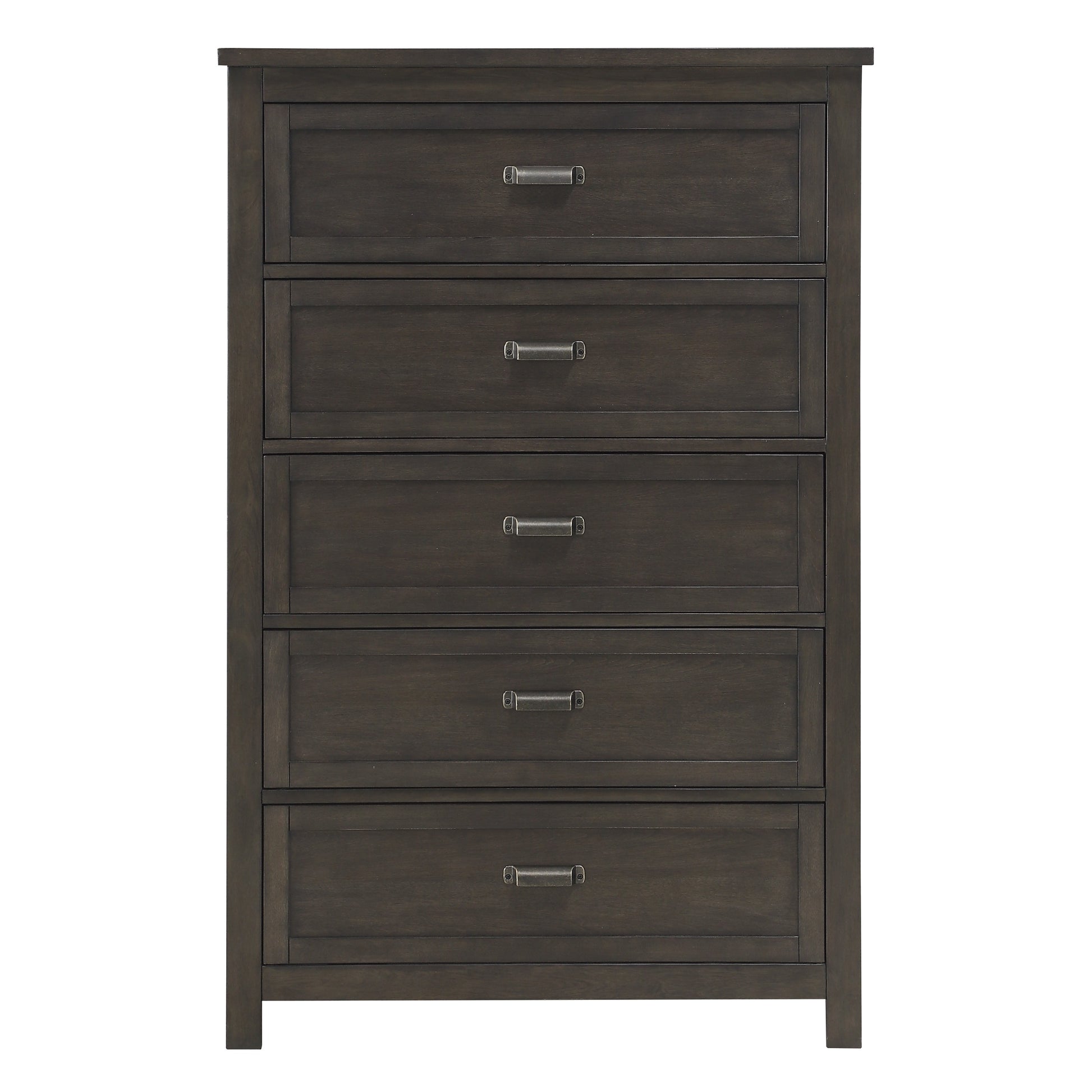 The transitional styling of the Hebron Collection creates a versatile look for your bedroom. The chest features dark bronze finished cup hardware, providing complementing accent to the dark cherry finish that accentuates the grain of the birch veneer.