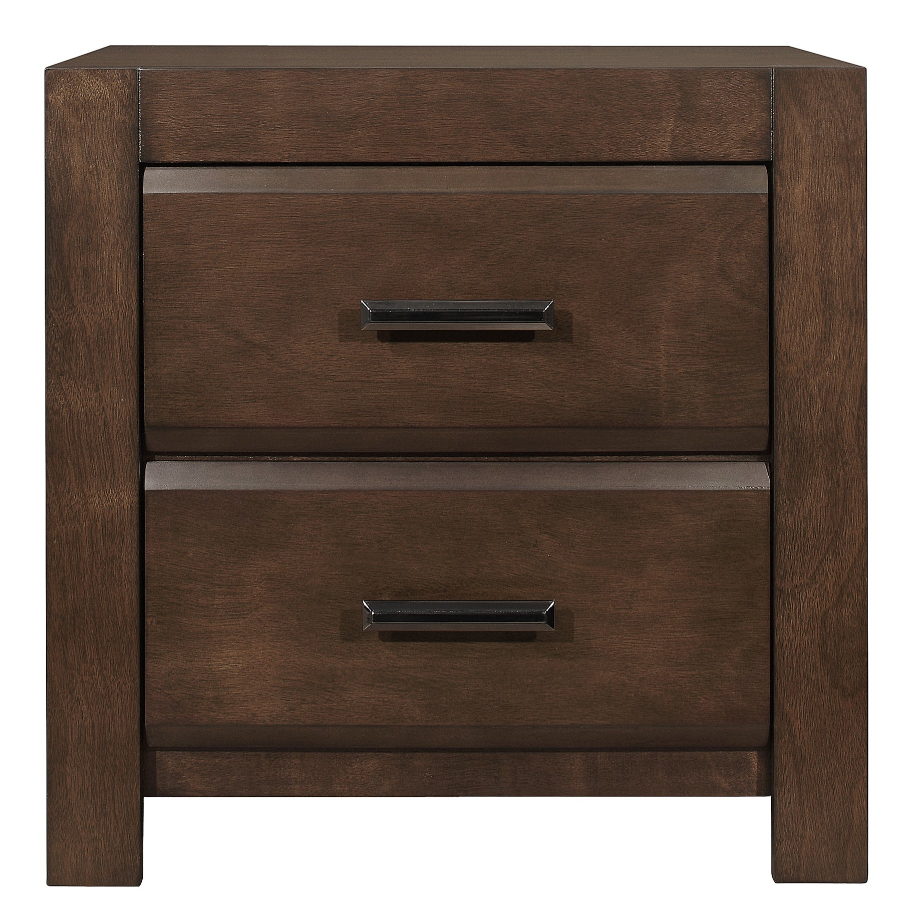 Taking a nod from contemporary design, the look of the Erwan Collection is a versatile choice for the modern home. A rich espresso finish highlights the okume veneer and beveled drawer fronts of the nightstand which are punctuated with gunmetal finished hardware and bold framing.