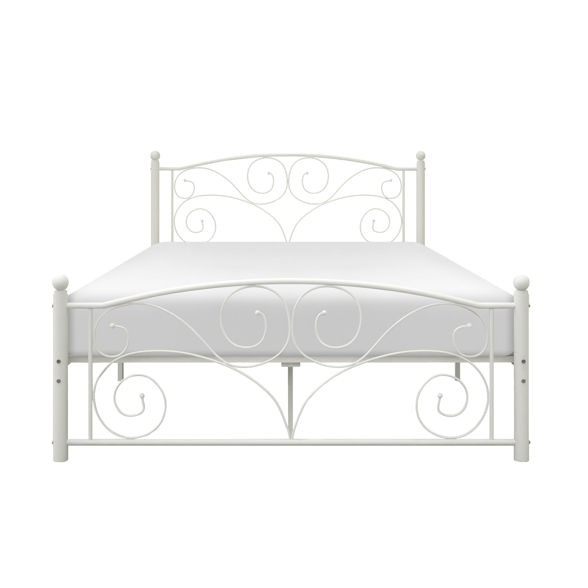 Perfectly at home in a child’s or second bedroom, the Pallina Collection will be a stylish addition to your home. Crafted of metal in white powder coating, with refined design that decorates the full size headboard and footboard, this elegant bed will pair with a number of room styles. The metal slat system requires that a mattress only is needed to complete the bed. Also available in twin.