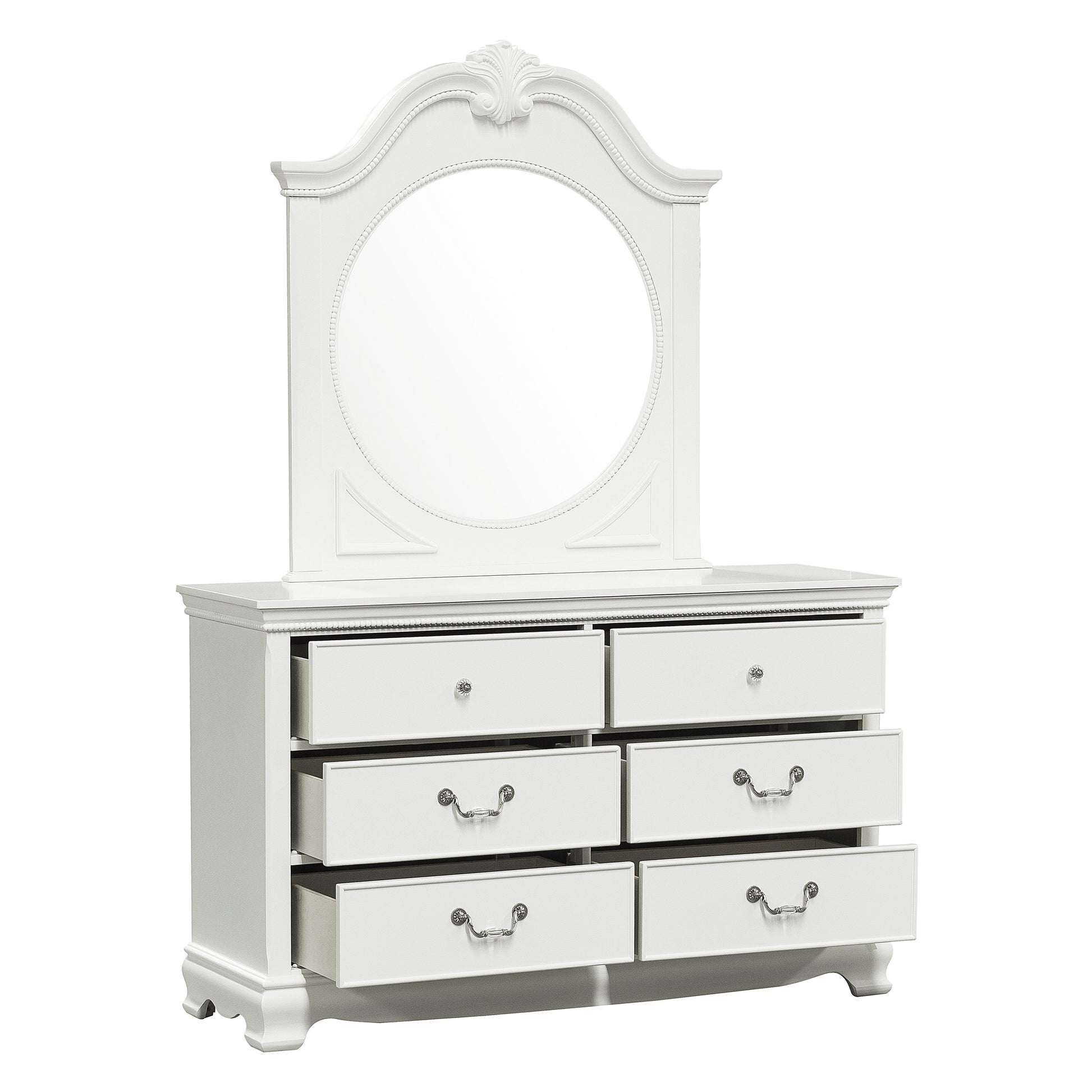 Classic traditional styling creates an elegant addition to your home in the Lucida Collection. Bead molding, shell motif, and a round mirror in traditional framing provide classic accent to the bedroom group. The twin and full bed options provide a flexible option to fit your space.