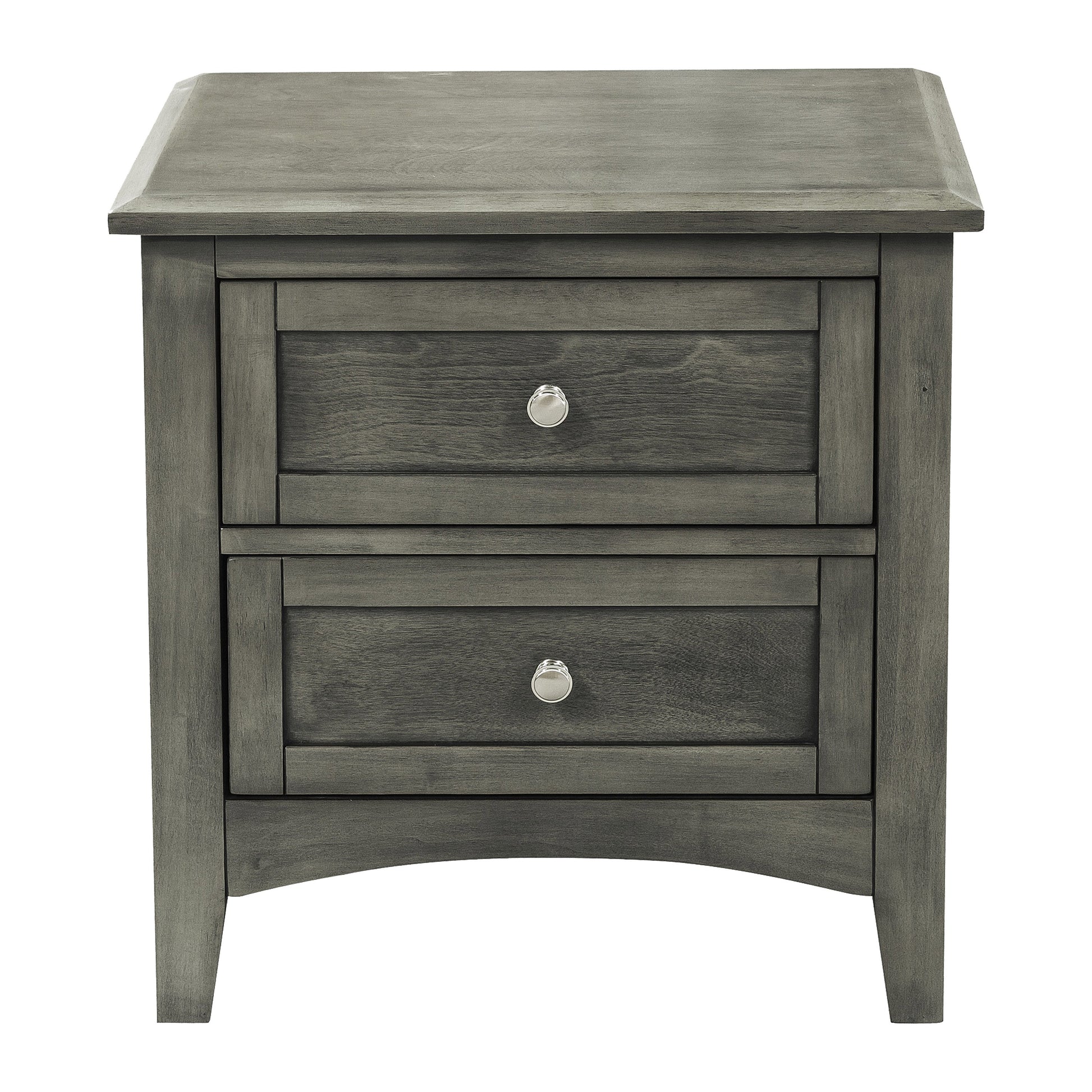 Transitionally styled for your bedroom is the Garcia Collection. Created for versatile placement within a number of environments the nightstand’s distinct framing along with a cool gray finish, over birch veneer, combine to provide a clean palate for your personal decorative style. Nickel knob hardware provides subtle, yet distinct, contrast to the drawer fronts.
