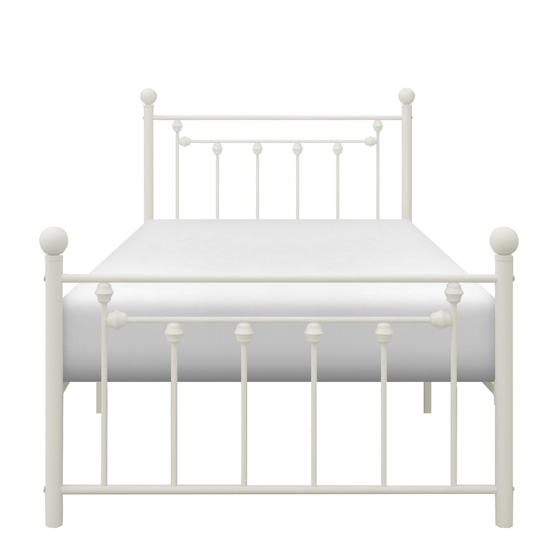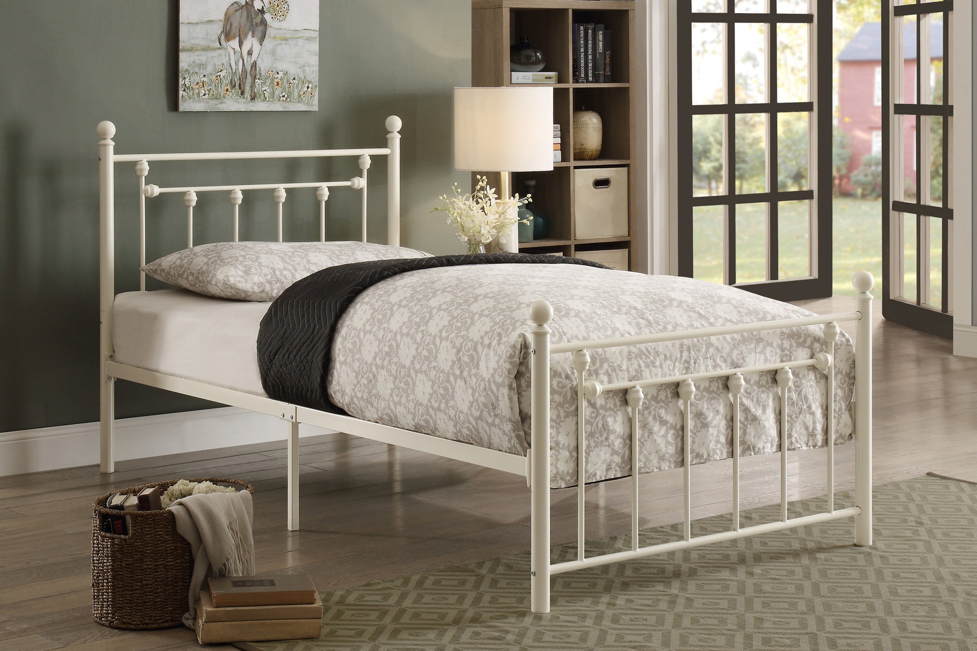 Traditional styling lends to the classic look of the Lia Collection. This twin size white metal bed features prominent decorative jointing and ball finials creating a casual traditional option for your bedroom. Also available in full.