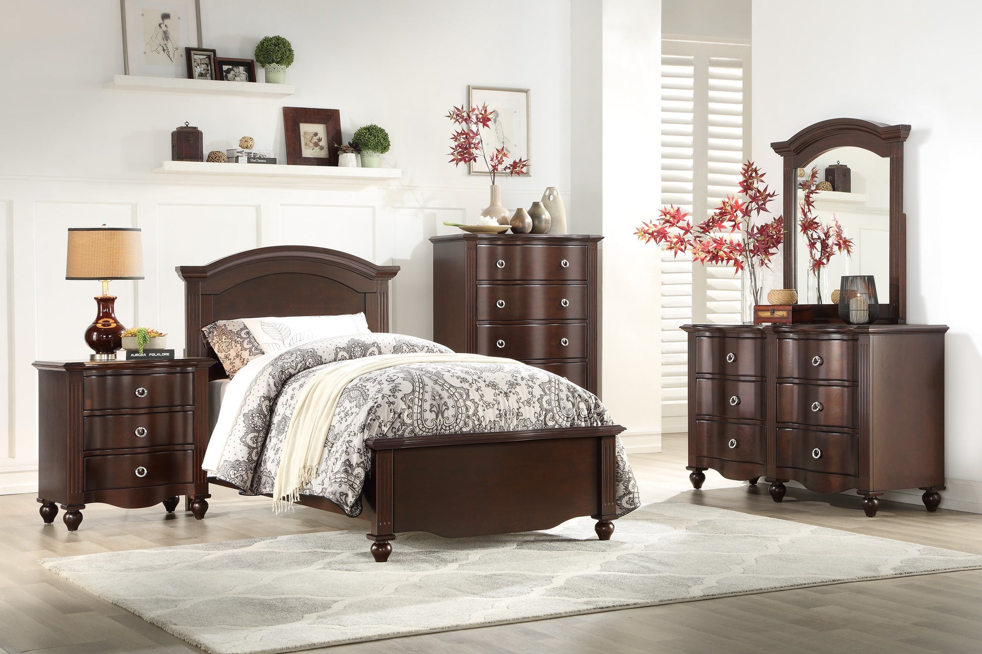 Your child’s bedroom is their space to grow, learn and play. The elegant, yet whimsical, styling of the Meghan Collection will provide the platform from which they will enjoy those experiences for years to come. Design elements that lend to a traditional look include, espresso finish, routed pilasters, turned feet and curved base rails. Your child will love the full panel bed, with its classic look providing stylish accent to their space.