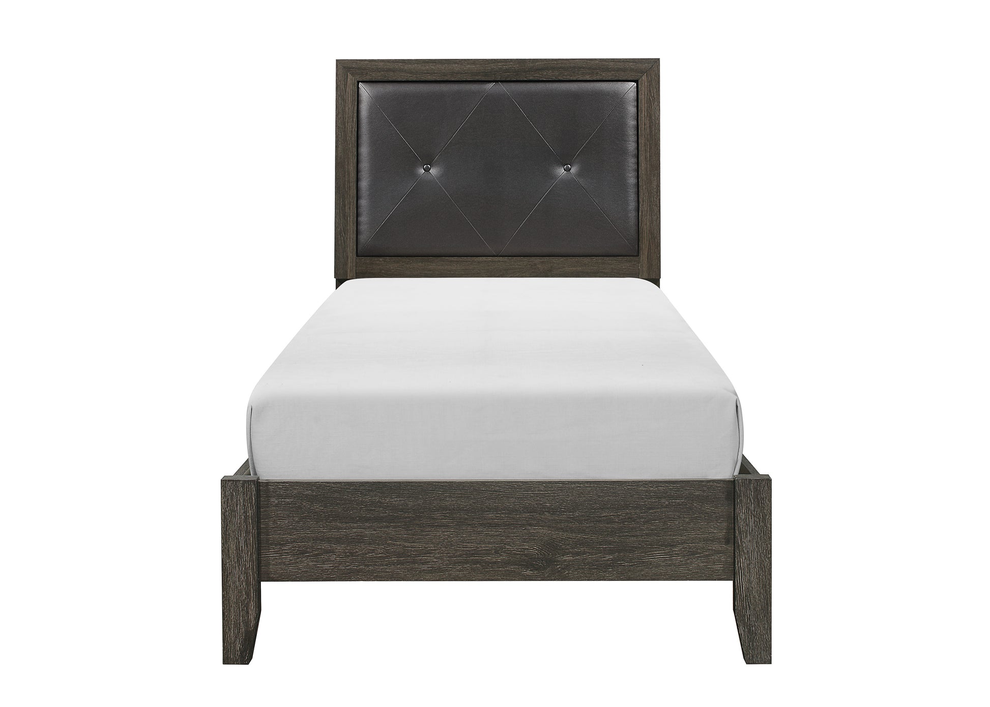 Enhancing the contemporary design of your bedroom is the focus of the Edina Collection. The dark gray finish builds on the unexaggerated lines of this bed and when blended with the tufted faux leather inserts on the headboard, culminates to achieve the desired modern look. Also available in an espresso-hinted cherry finish.