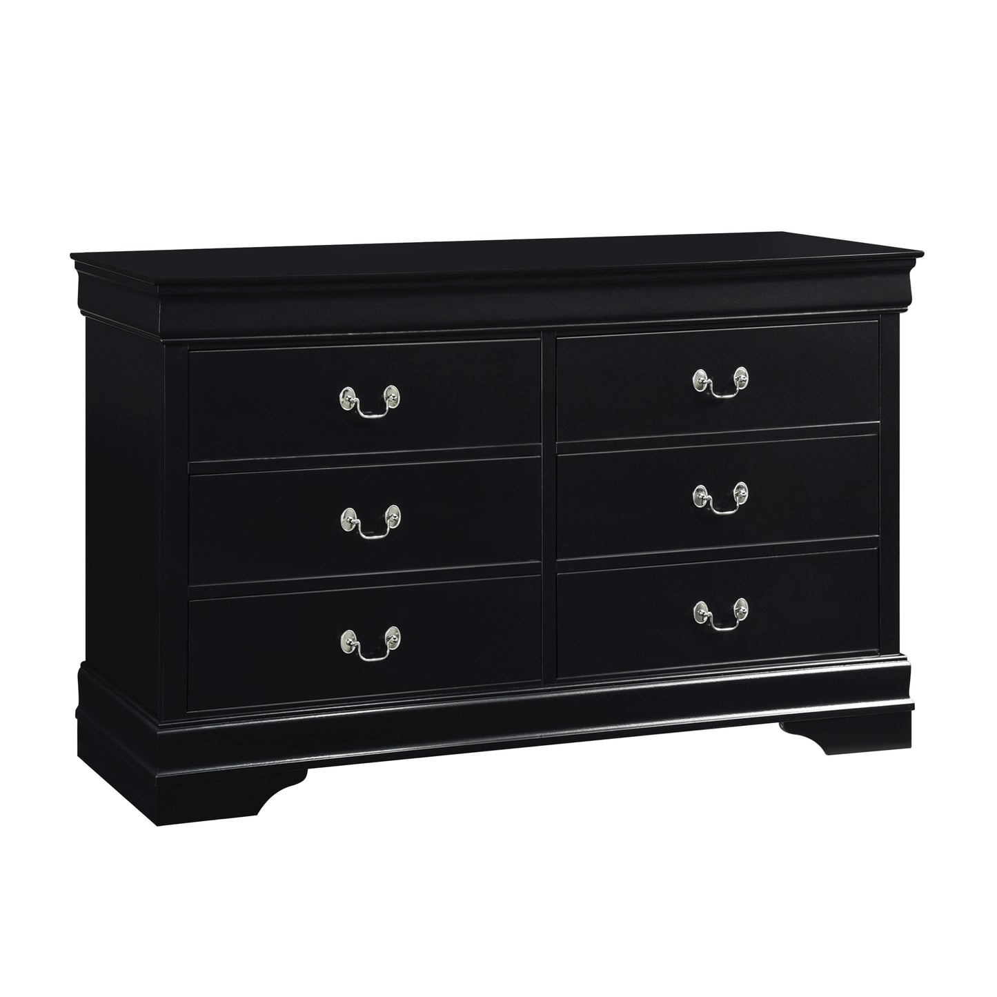 Traditional in design and modest in scale, the elegant Mayville Collection takes its design inspiration from the classic Louis Philippe styling. Black finish with all of the traditional flare unique to the style – antique nickel tone drop handles and distinct framing – this collection is a perfect addition to your traditional adult or youth bedroom.