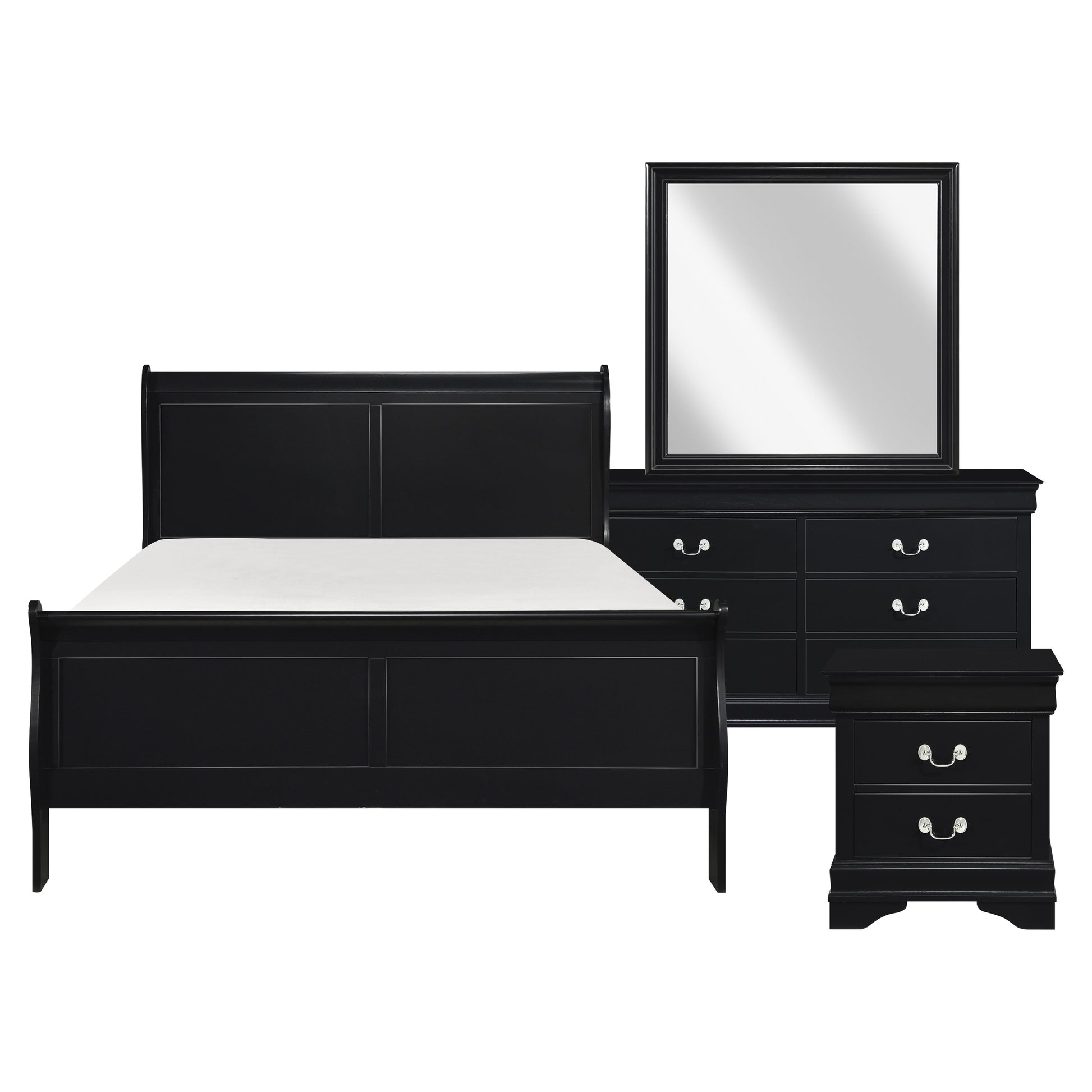 - Bedroom set includes queen bed, nightstand, dresser and mirror