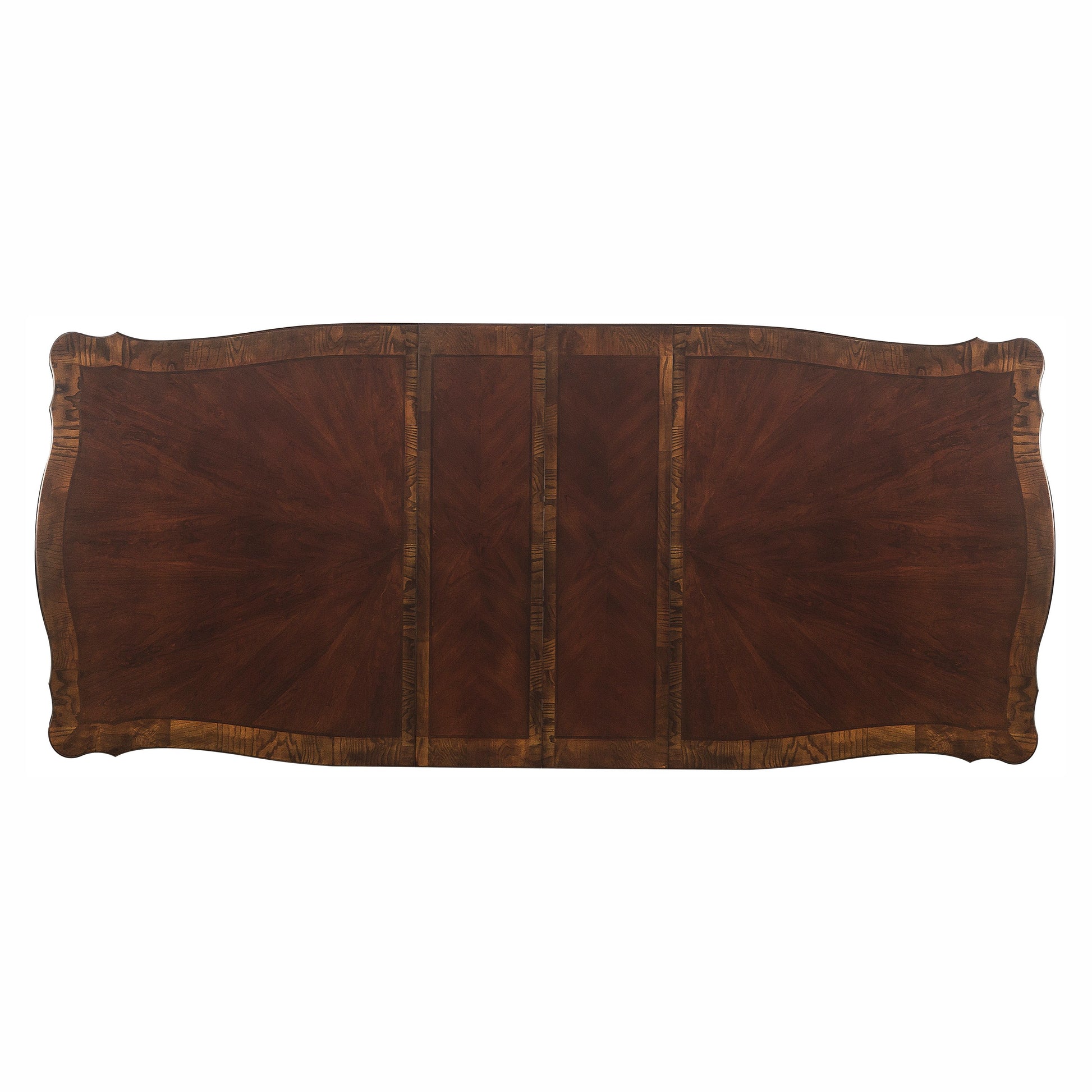 Walking into the dining room that is occupied by the Deryn Park Collection will immediately invoke your love of the traditional aesthetic.?Stately from every angle, sophisticated design elements blend to create this beautiful dining table. The cherry finish is highlighted by gold tipping that accentuates the traditional dining table.