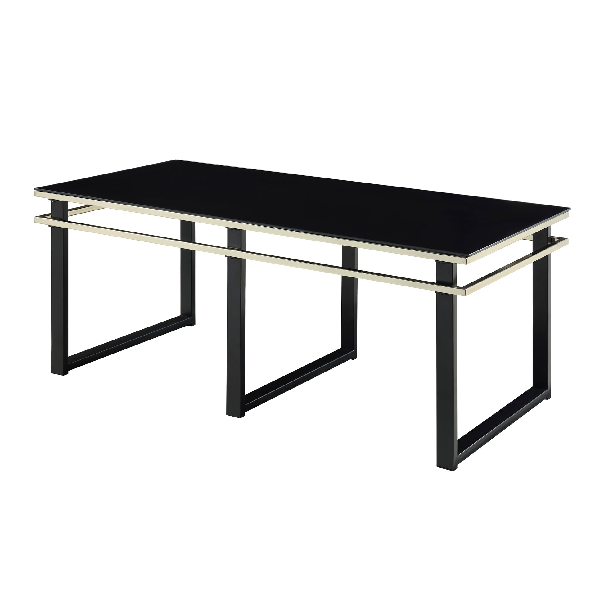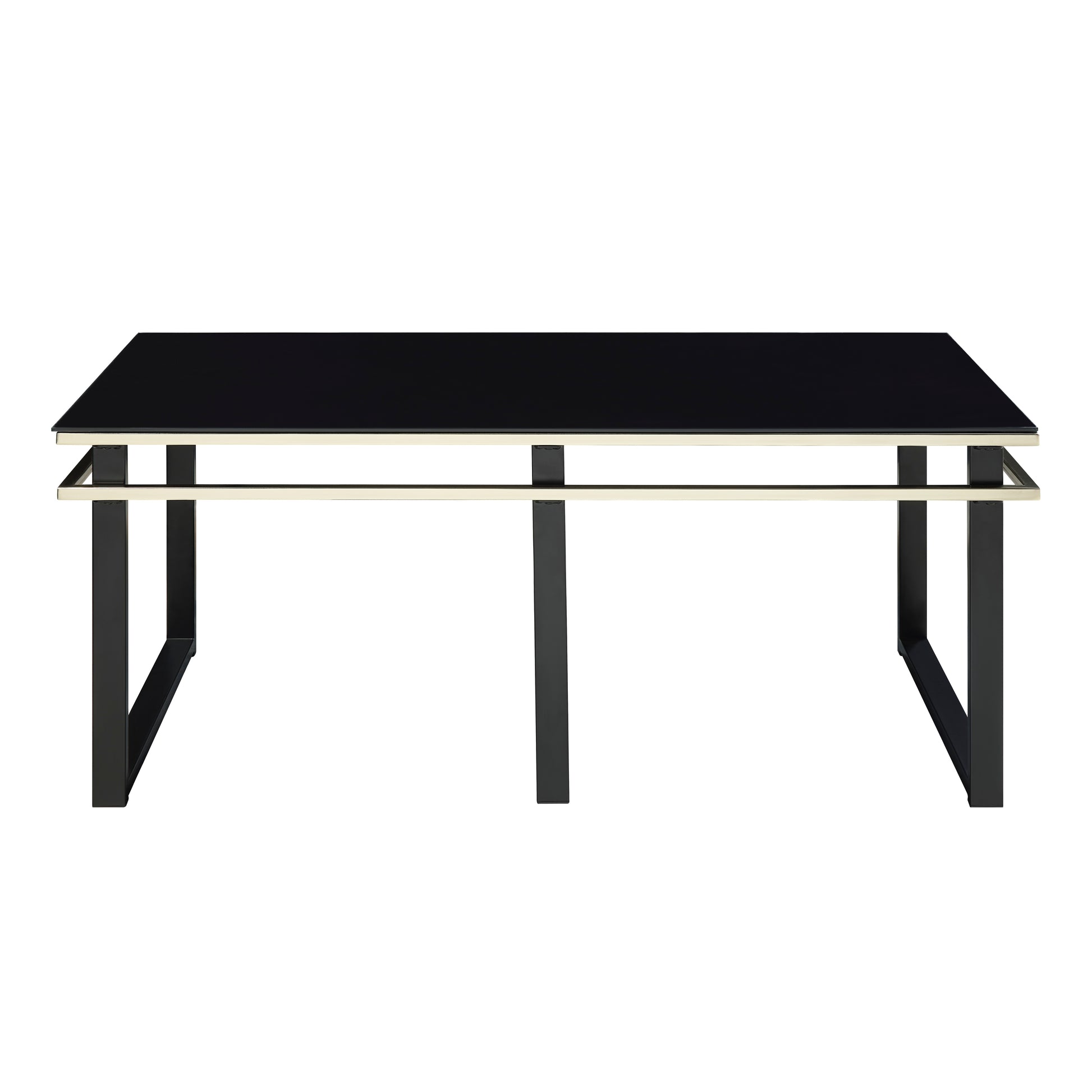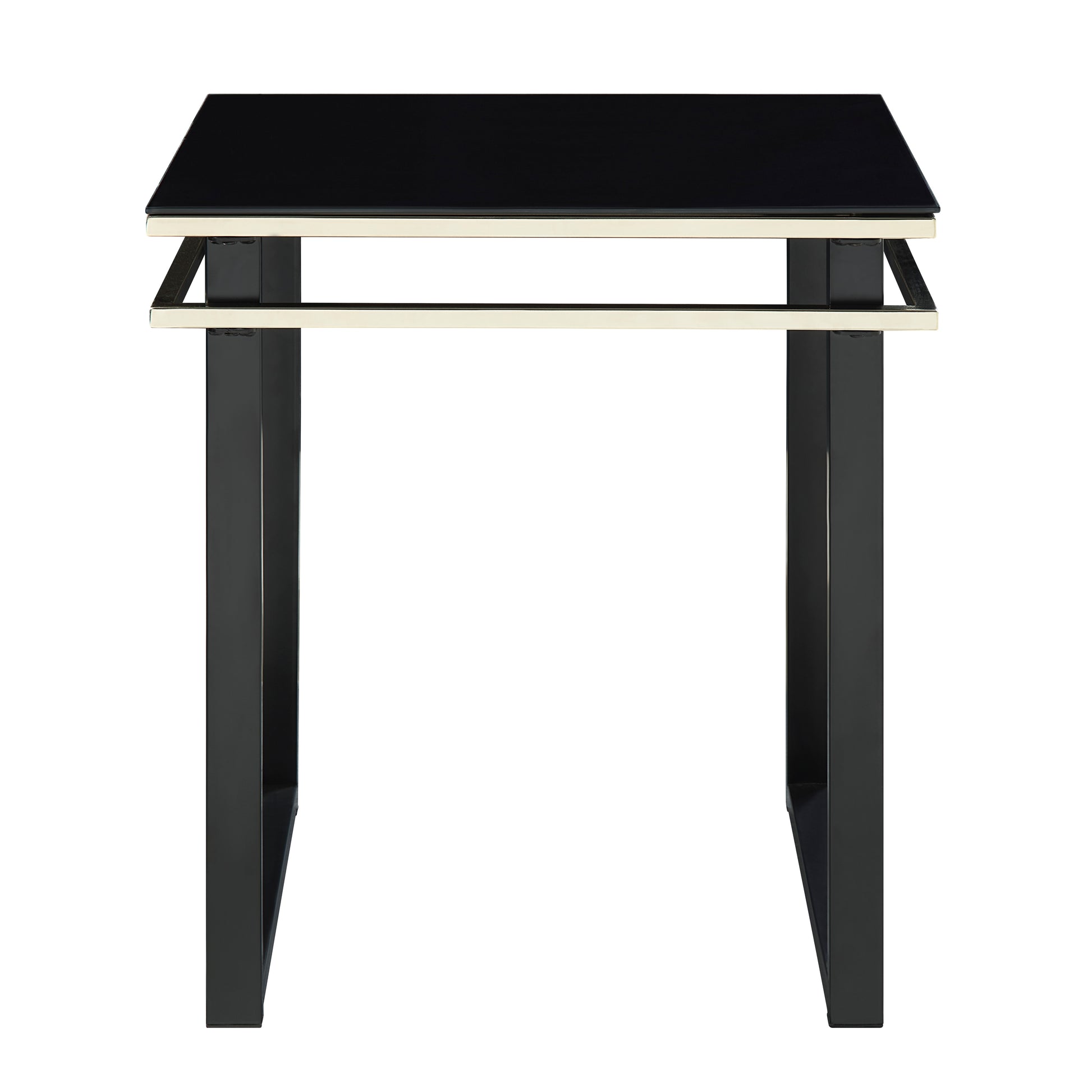 The convenient pairing of the Zamir Collection’s cocktail and two end tables provides an easy addition to your home’s living room. The elegant contrast of the black tempered glass tabletops, gold-hued banding, and metal legs creates a modern look for your home’s living room. The rectangular shape of the cocktail table’s top and the square top of the two end tables presents a classic profile, and ample tabletop display space.
