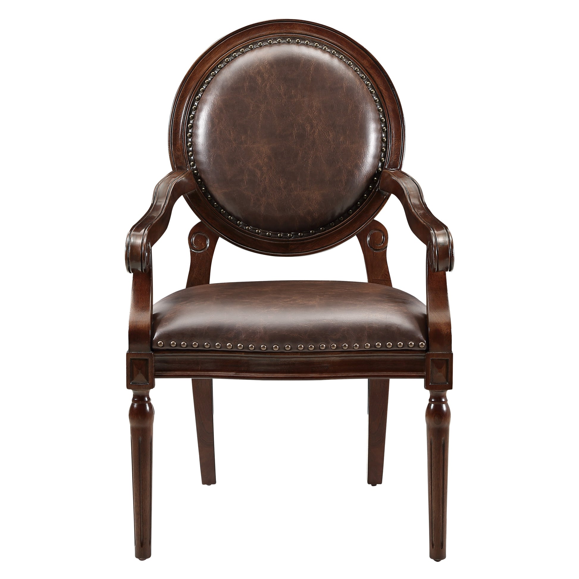 The classical styling of the Aldermont Collection will serve as a timeless statement of your preference for traditional design. The brown finish that graces the wood framing is a perfect complement to the faux leather of the chair’s seat and back, as well as the nailhead accent that defines both.