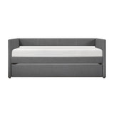Whether tucking in for the night or lounging while reading a good book, the Trudy Collection is a versatile option for your bedroom space. The modern lines of the daybed lend to myriad decorative aesthetics ranging from Modern to Transitional while the Dark Gray hue of the fabric upholstery provides further complement to your space. The additional sleep space the included trundle can provide for your home allows for convenient access when it is needed and discrete storage when it is not in use.