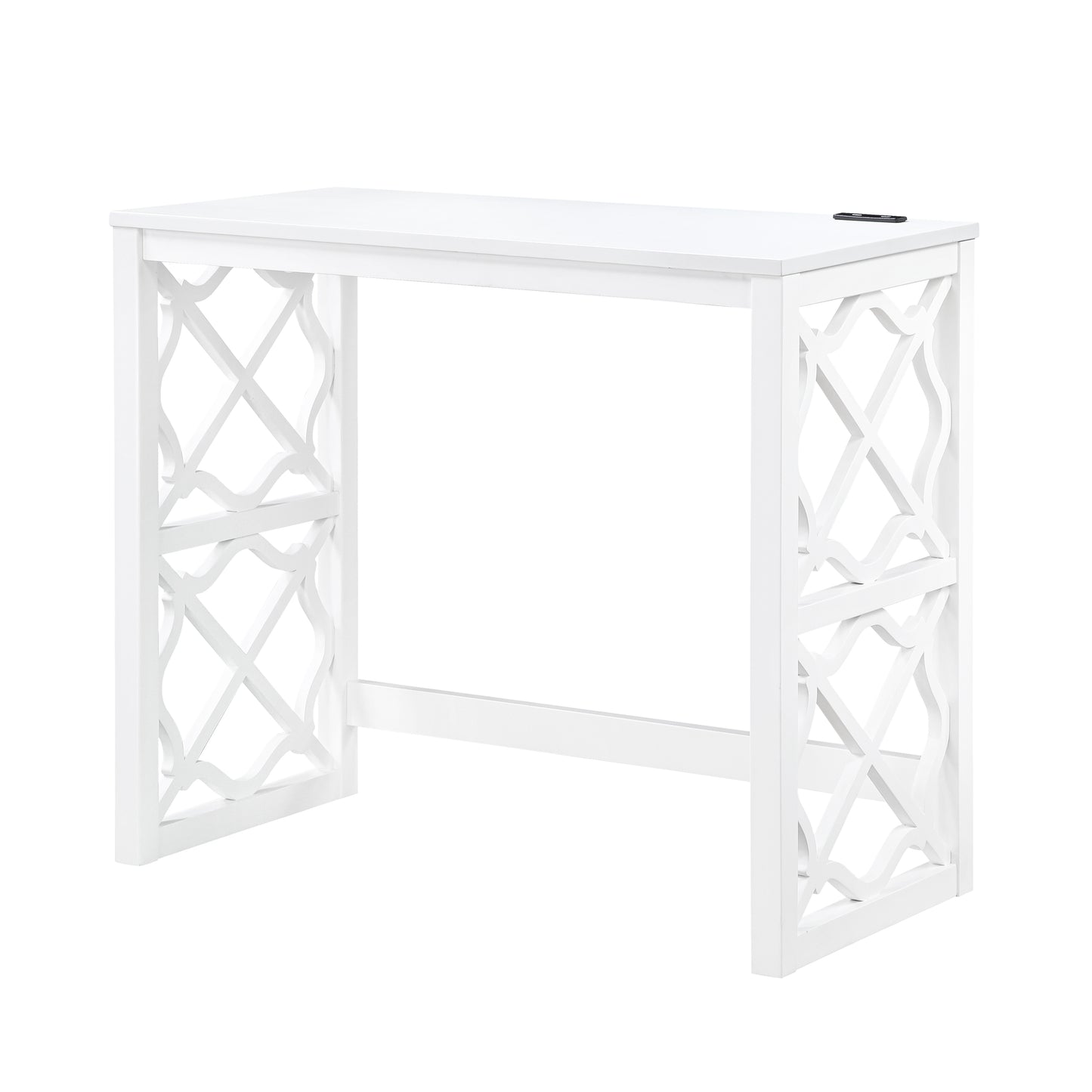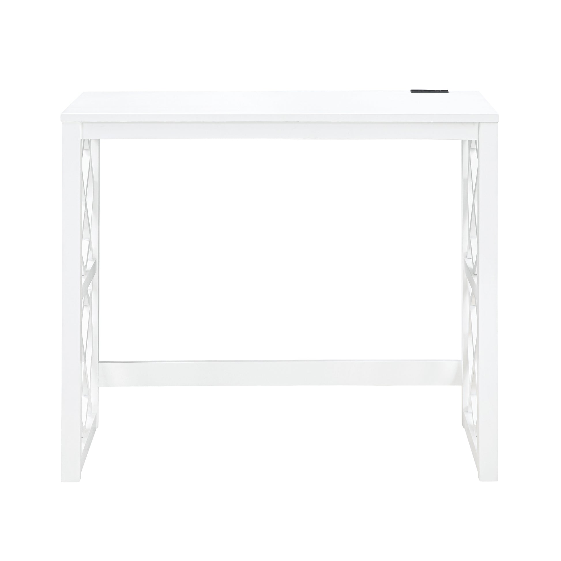 Create a bright and efficient workspace with this versatile 3-piece nesting desk set in a crisp white finish. Crafted from birch veneer, solid wood, and engineered wood, this set includes a large desk equipped with two convenient USB charging ports, a smaller rolling desk with smooth casters for effortless mobility, and a matching padded stool. The rolling desk neatly tucks beneath the larger desk, optimizing space when not in use. The comfortable light brown textured upholstered stool provides a perfect seating solution with a weight capacity of 200lbs. Ideal for home offices, dorm rooms, or any area needing a flexible workspace, this set combines functionality with a clean, modern aesthetic.
