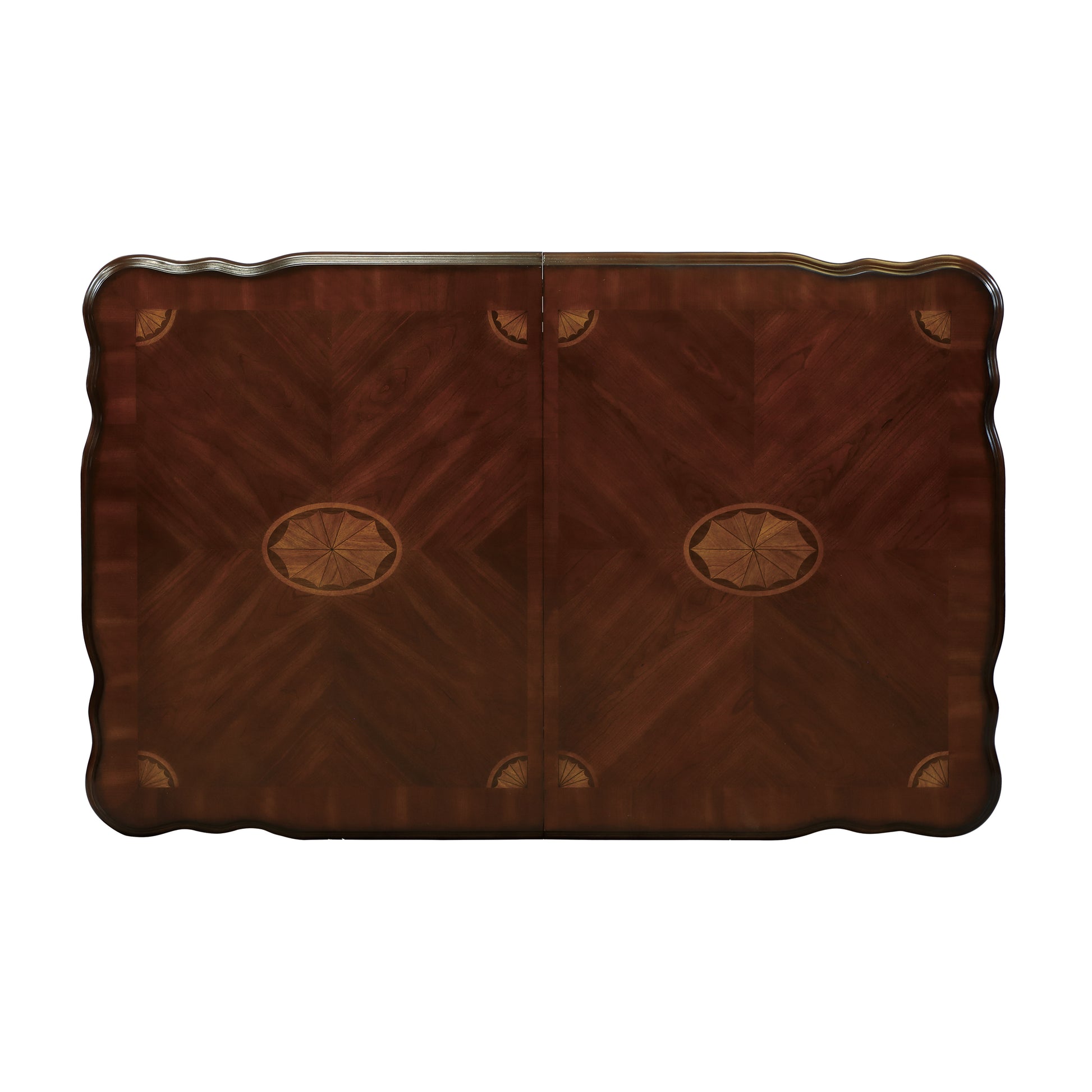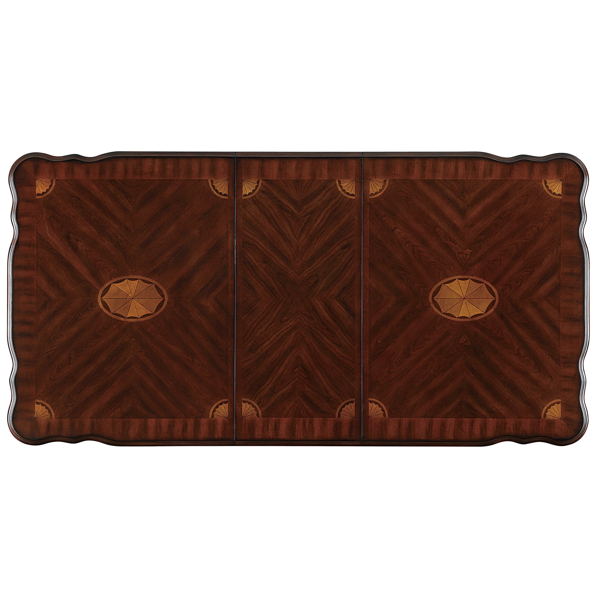 Traditional design elements are elegantly layered to create the beautiful Norwich Collection. Shell motif, egg & dart molding, rope molding, ball and claw feet, with elegantly designed inlay begin the design journey.?Book-match cherry veneer prominently highlights the top of the rectangular table and features oval inlay decorative accenting. The table is offered in a dark cherry finish.