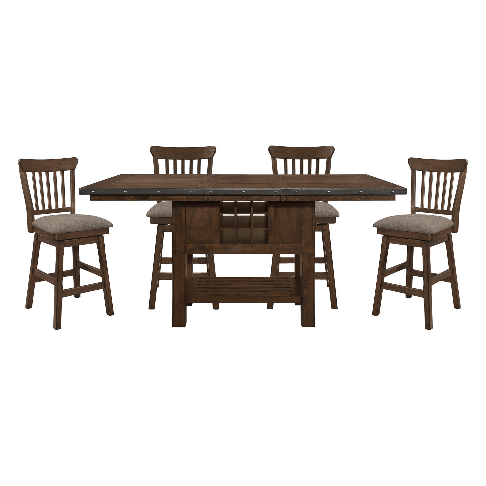 - Dining set includes dining room counter height table and 4 counter height swivel chairs