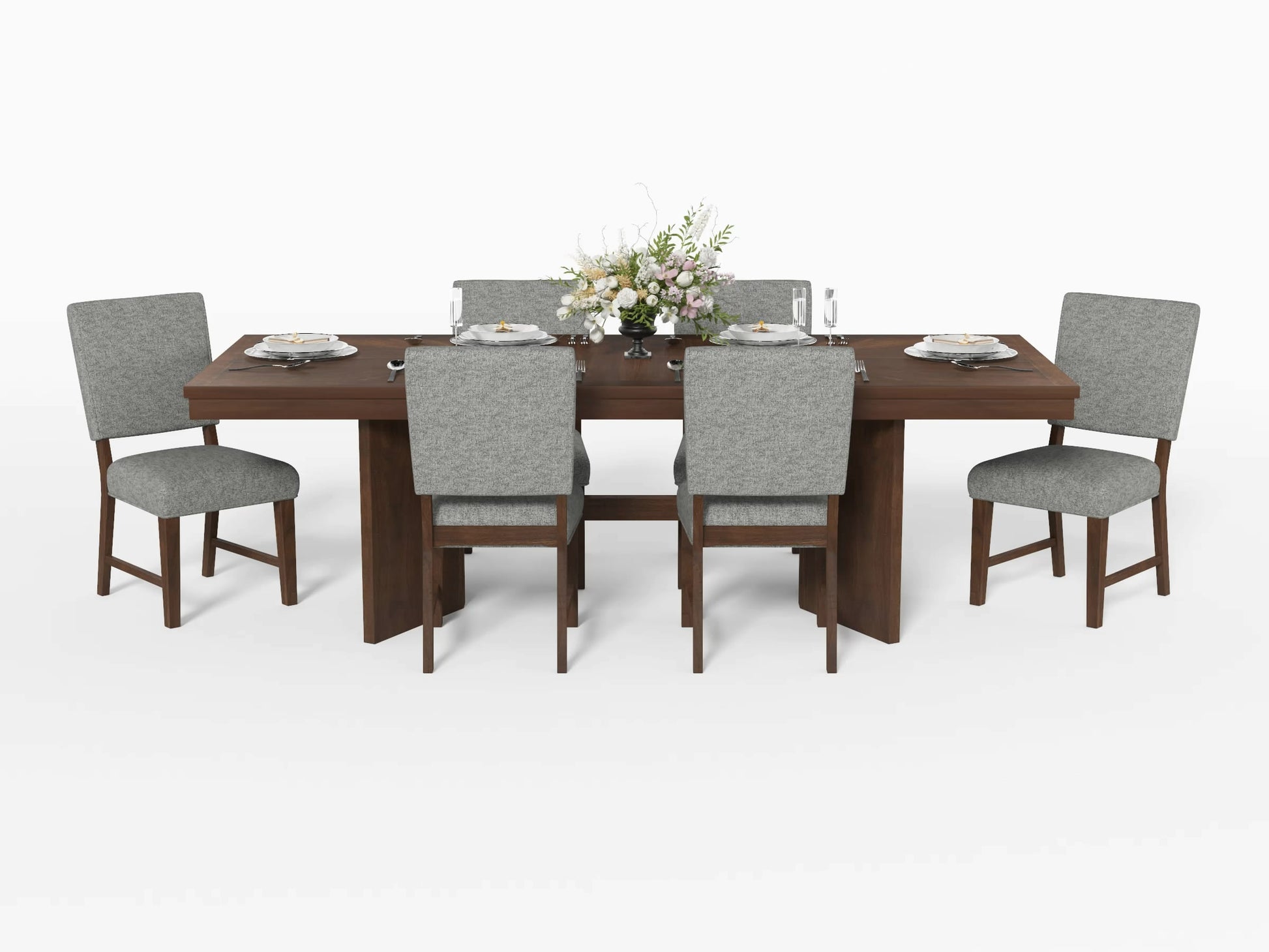 Modern lines pair with subtle rustic influence to create the design of the Franco Collection. The prominent grain of the collection’s walnut veneer is highlighted by a walnut finish. The angular lines of the trestle table base provide ample support for the table’s rectangular top.