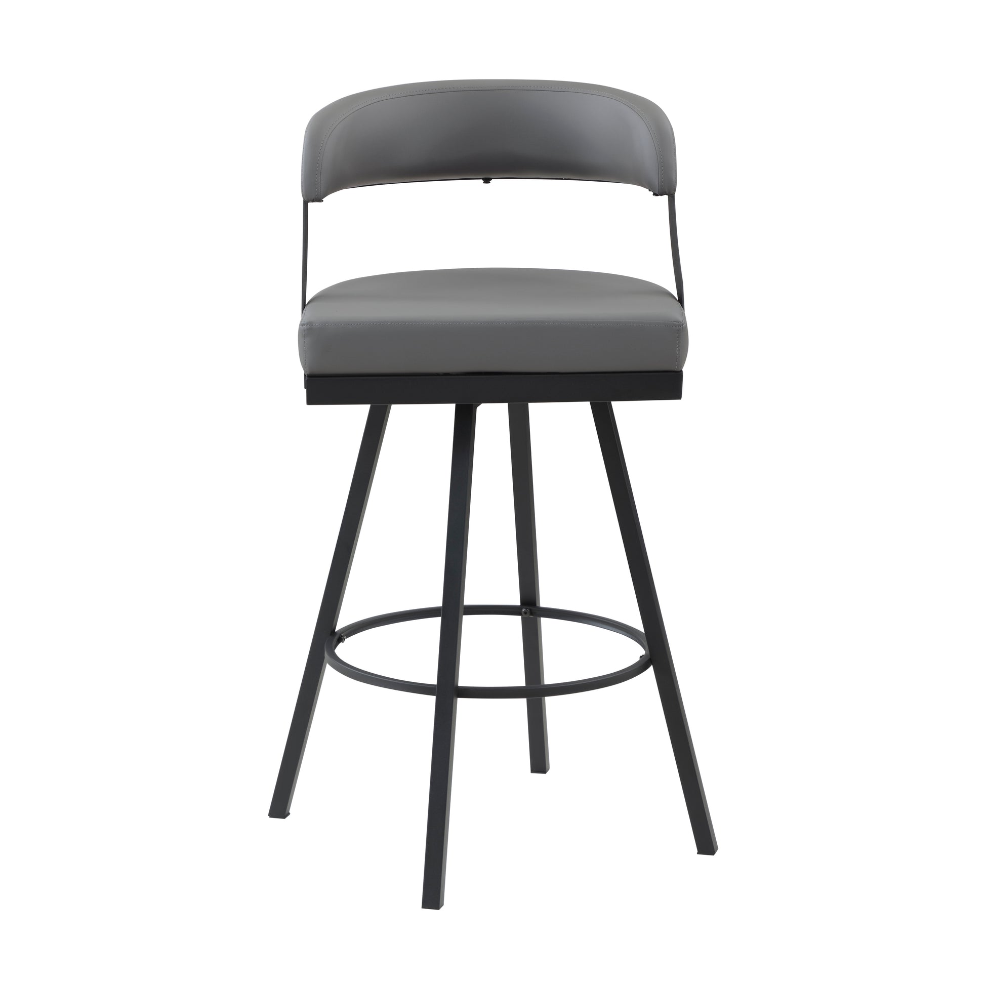 Designed for your home’s modern aesthetic, the Crowley Collection provides a stylish seating option for your mealtime and social activities. The 29-inch height chair features a contoured back, black metal framing, and gray faux leather seat.