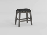 The design of the Timbre Collection will be the perfect seating addition to your casual dining space. The counter height barstool’s legs feature wire-brushed acacia veneer that is highlighted by a grey finish. Topping the stool is the textured black faux leather seat with nailhead accent. Coordinating dining table is also available.